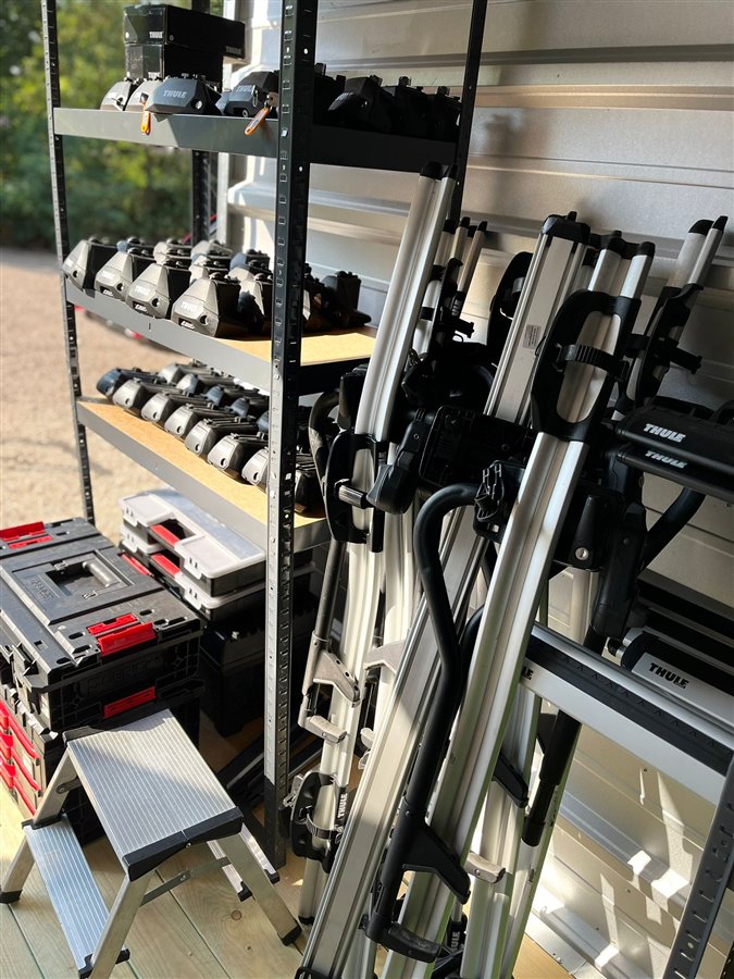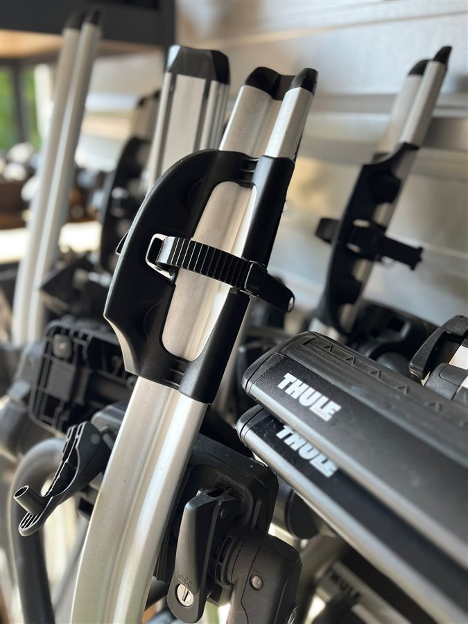 🔹 Pełne wyposażenie wypożyczalni – markowy sprzęt THULE (boxy, bagażniki, uchwyty rowerowe, akcesoria montażowe)