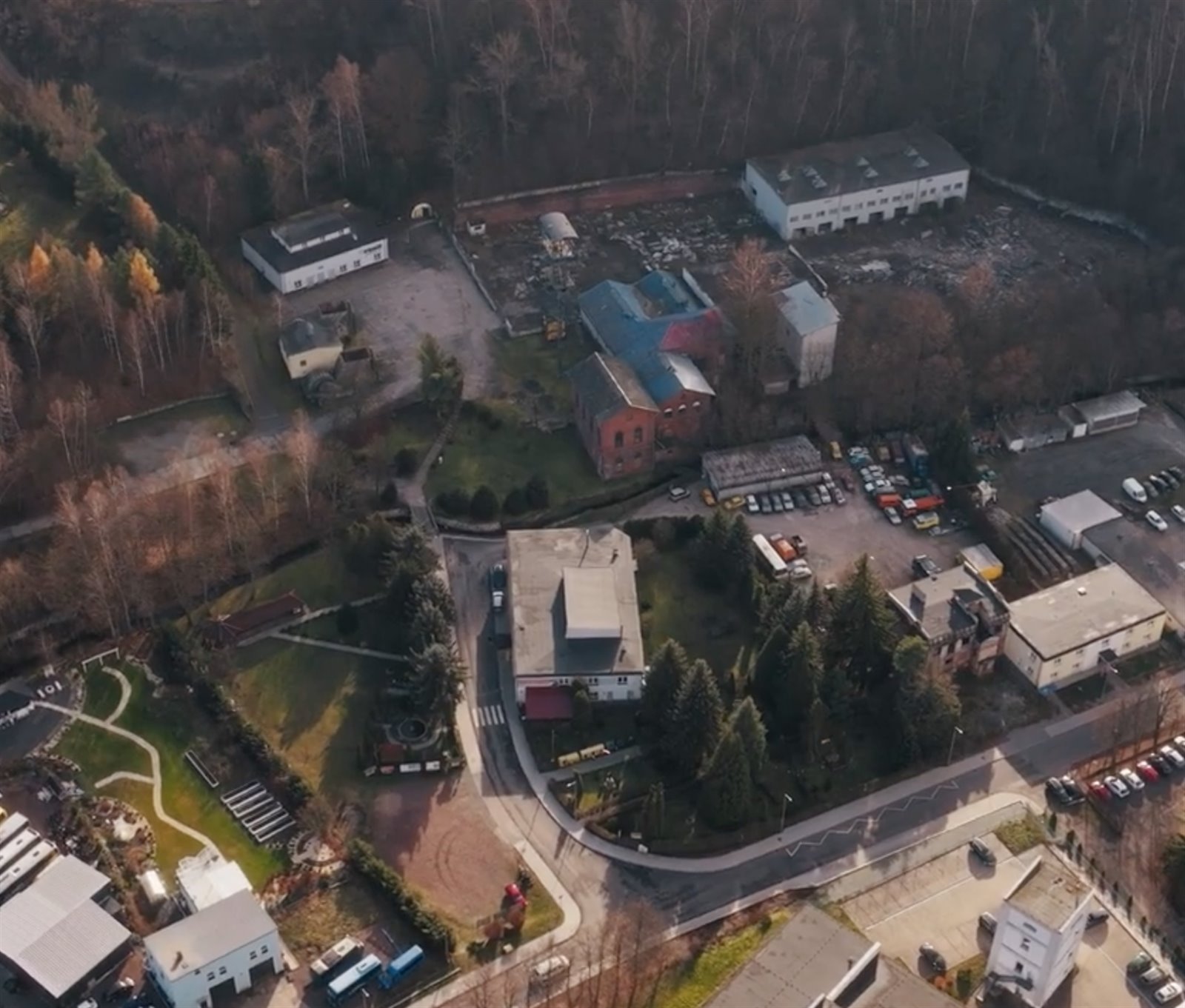 Nieruchomość: 1,5 ha gruntu + 2000 m² budynków po generalnym remoncie (nowe dachy, pompy ciepła).