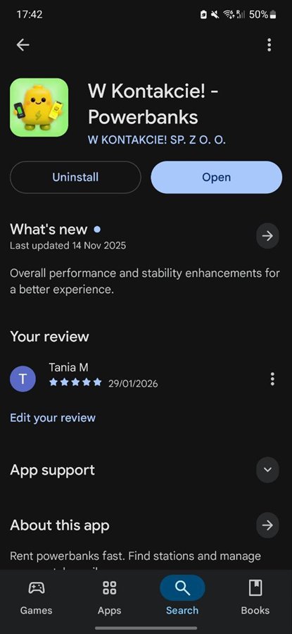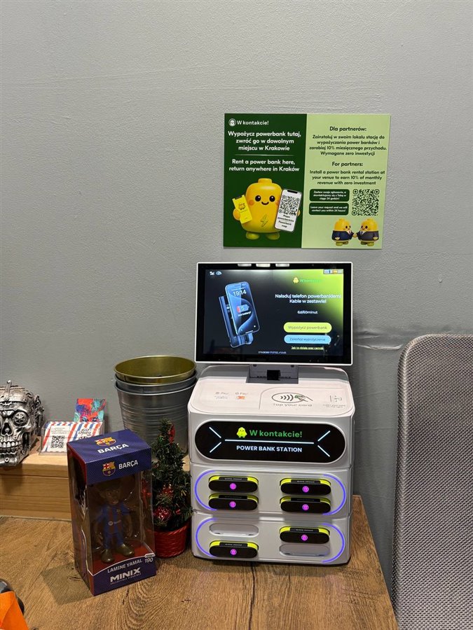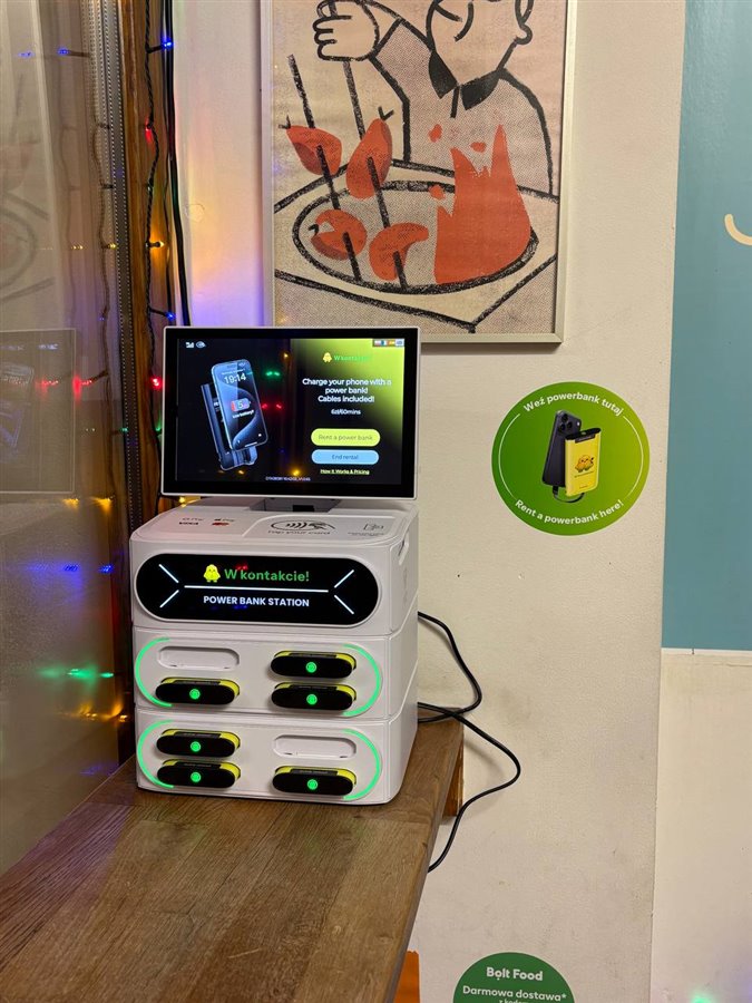 - Sieć 12 nowoczesnych stacji do ładowania (każda posiada 8 slotów na powerbanki).