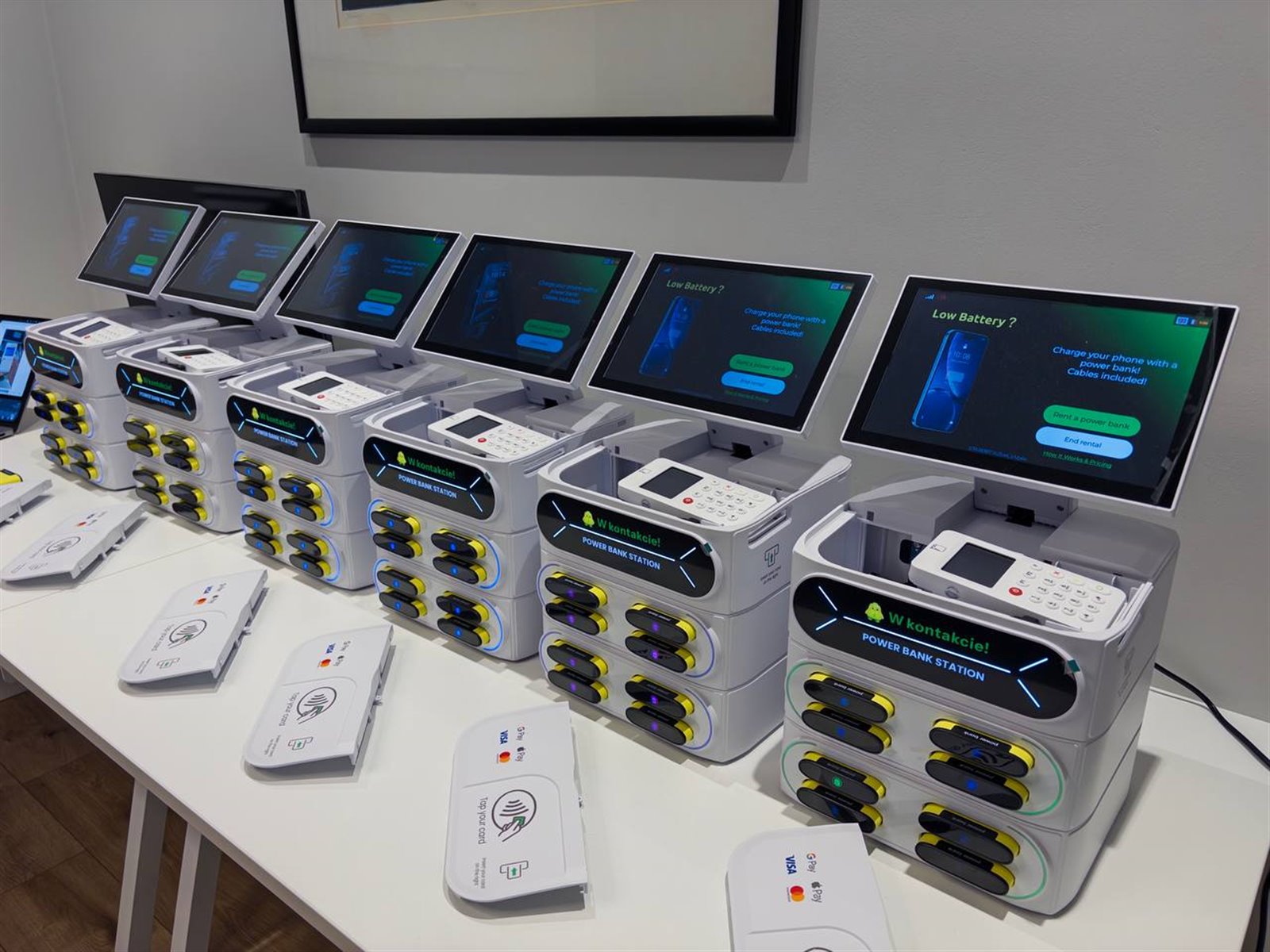 - Pełny zestaw powerbanków (8 sztuk na stację).