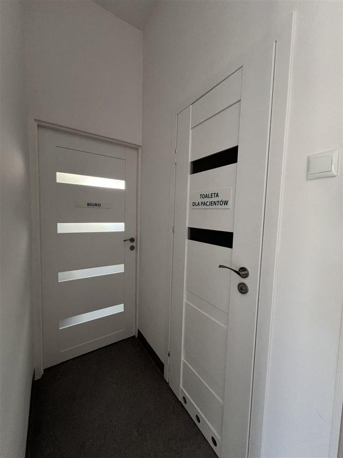 Przestronna recepcja i poczekalnia, WC dla pacjentów.
