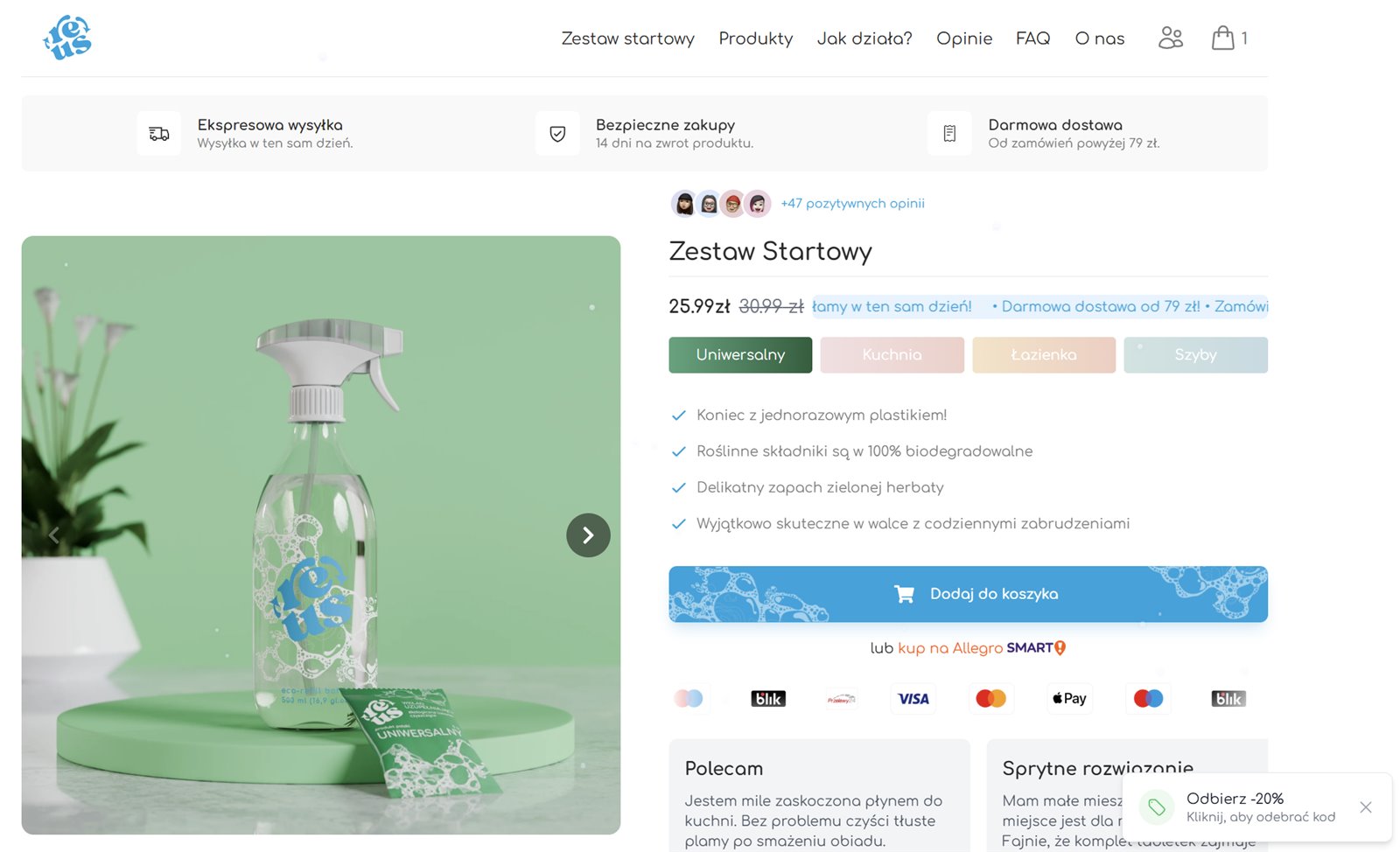 Gotowy e-commerce z eko produktami do sprzątania. Własny brand.