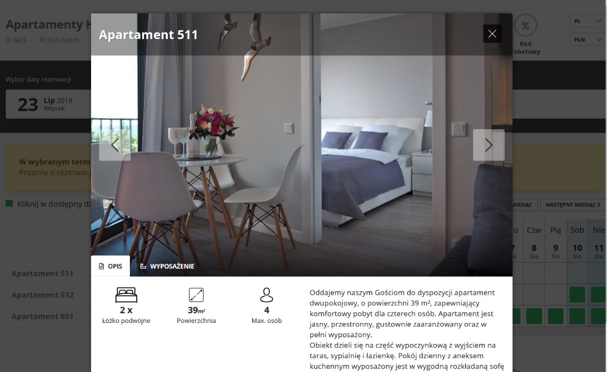 1 Apartament w Międzyzdrojach, system zarządzania wynajmem, baza danych klientów. Możliwość dokupienia 2 apartamentów.