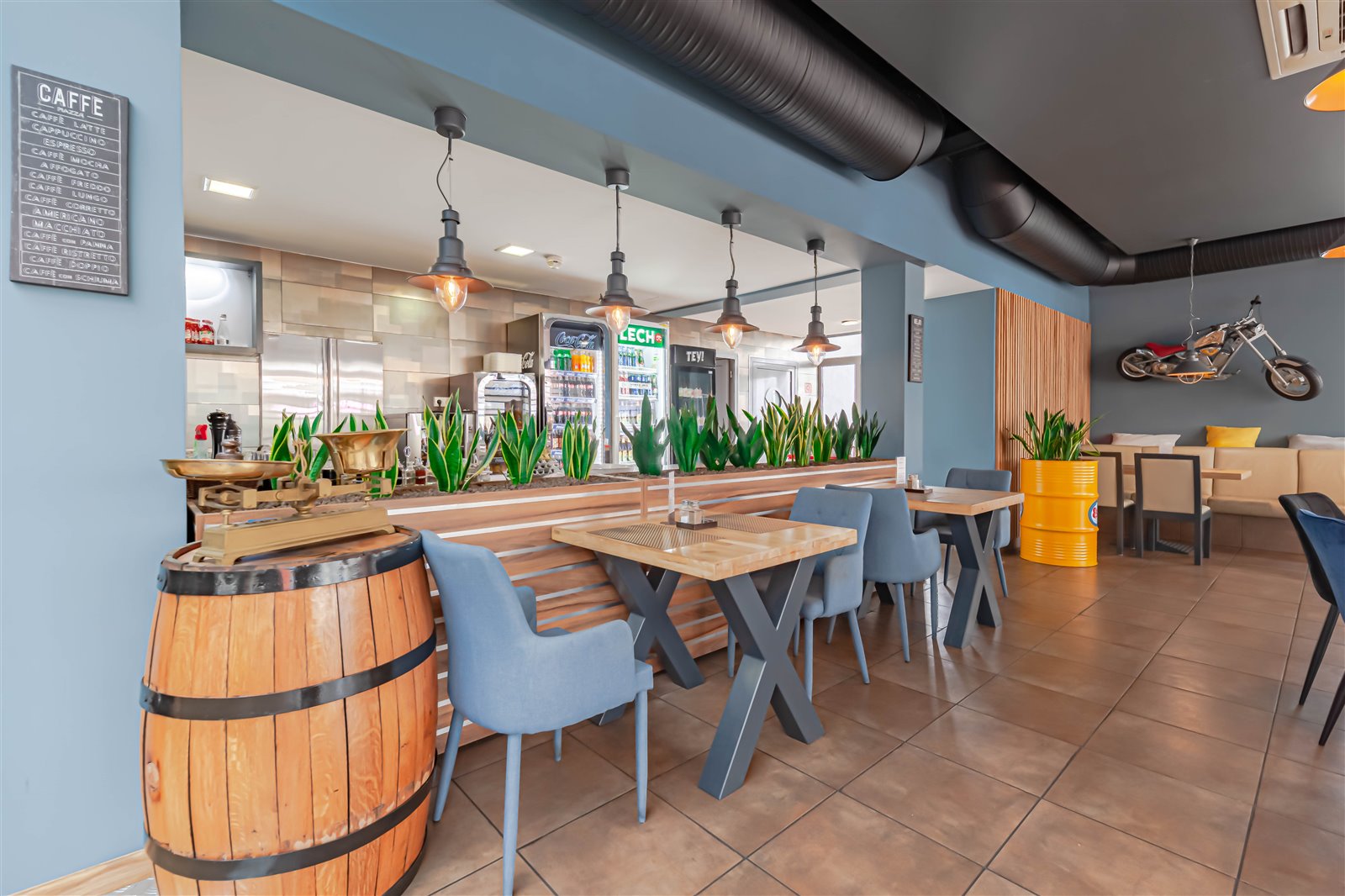 • Restauracja, serwująca dania kuchni chińskiej i polskiej, wraz z klimatyzowaną salą kominkową,