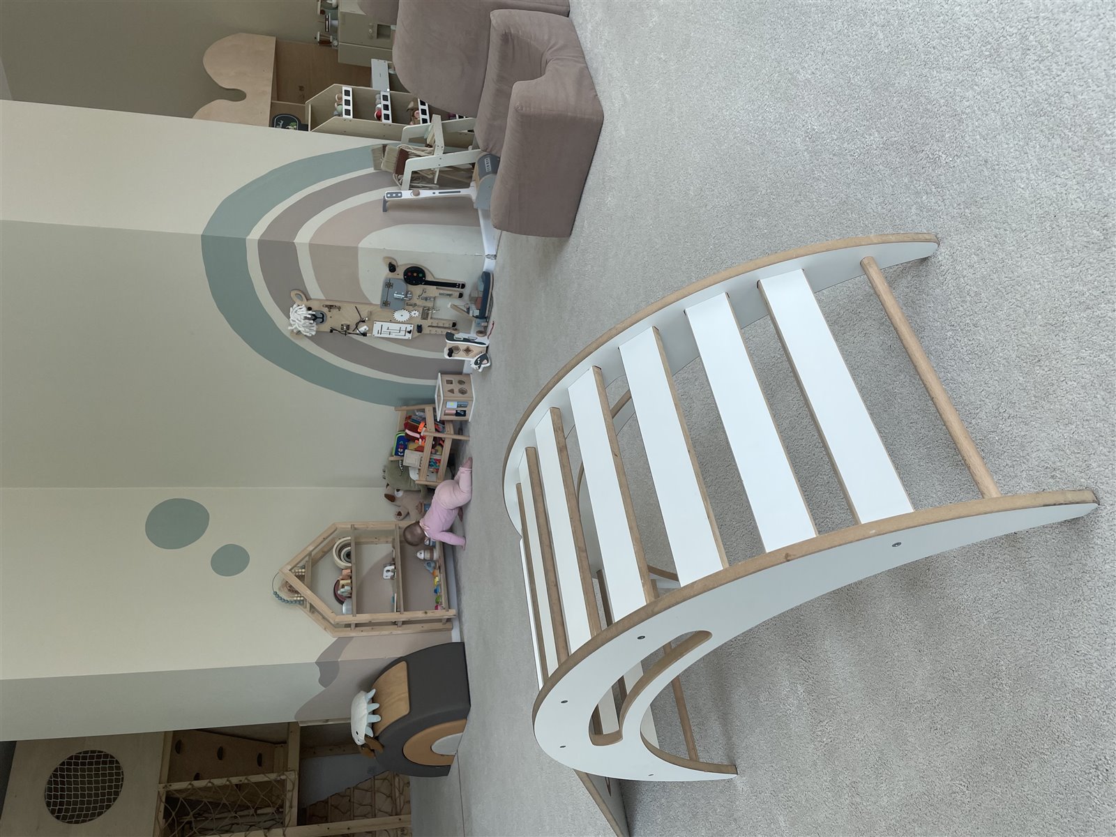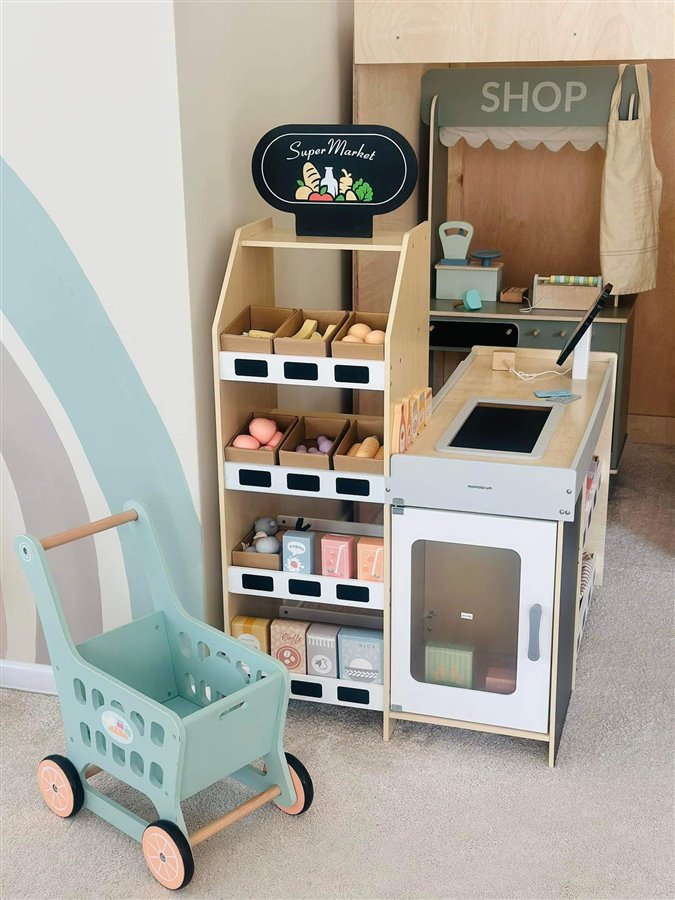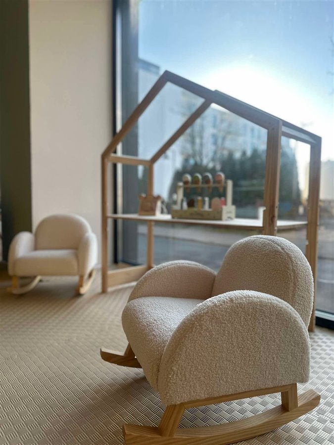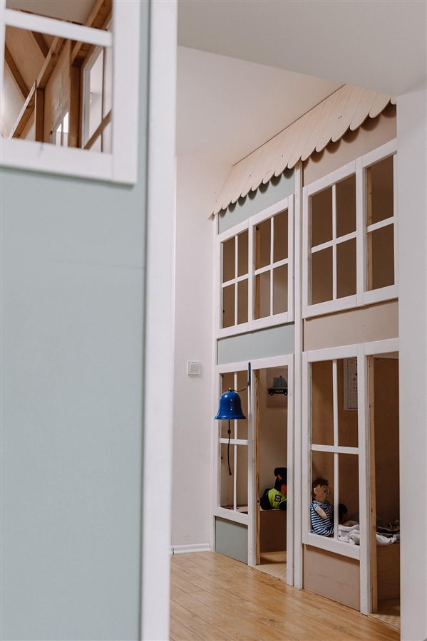 Część bawialnianą – konstrukcje drewniane, zabawki, kąciki tematyczne