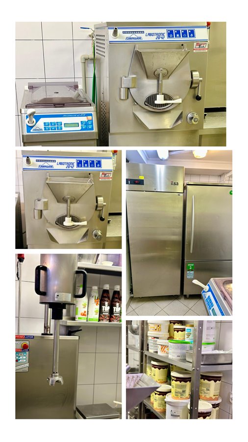 • Sprzęt: Piece, frezer, pasteryzator, szokownik, urządzenia chłodnicze, turbomixer, ubijaczki, innowacyjna drukarka cukiernicza, wałkownica, wagi i wiele innych.