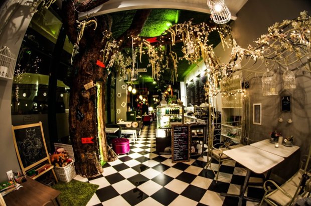 Kawiarnia ma rzeszę stałych klientów, ale przyciąga również ludzi z daleka z powodu niesamowitego wnętrza.