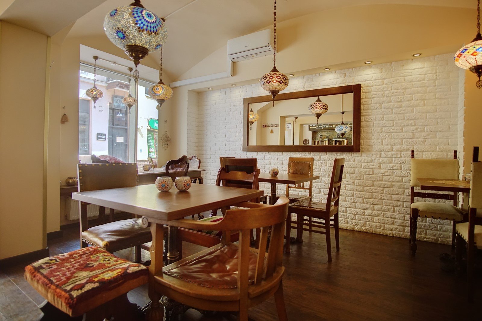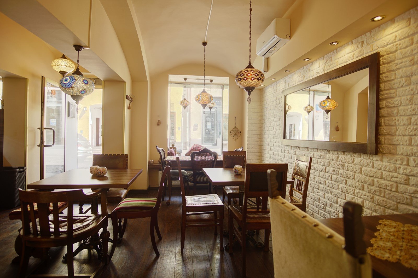 Lokal o powierzchni ok 60m2, bezpośrednio pod lokalem duża piwnica. Całość utrzymana w tureckim klimacie.