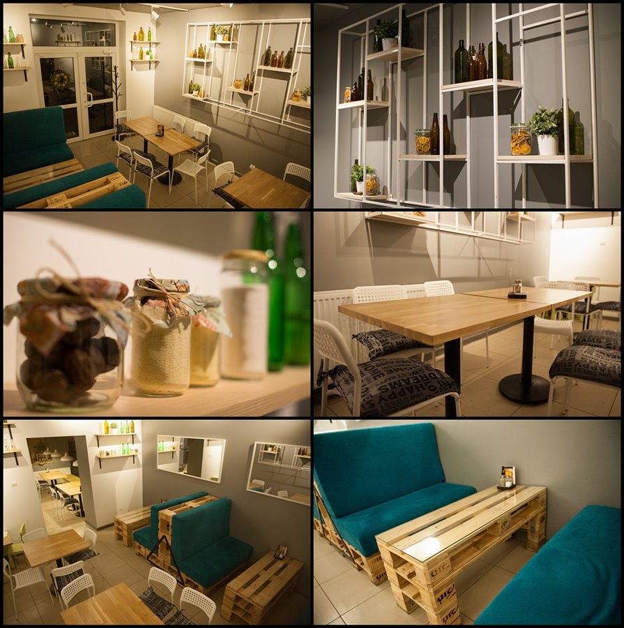- drewniane stoliki – bardzo wygodne dla klientów,