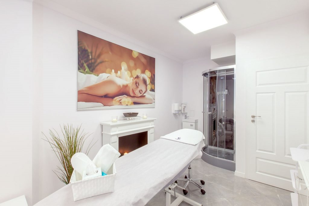 - gabinetu masażu ( z kominkiem i kabiną prysznicową)