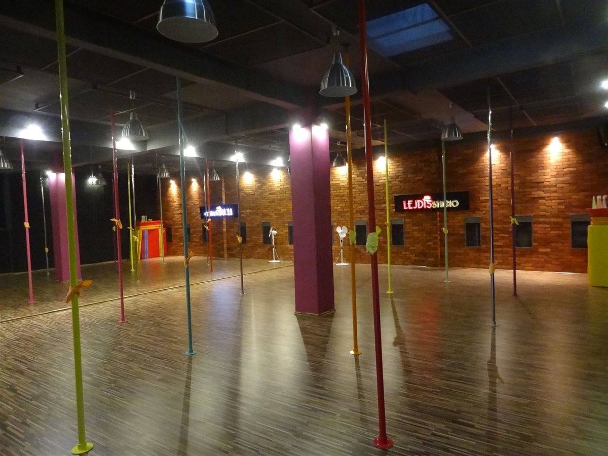 - 13 profesjonalnych rurek do pole dance, materace, maty, wysokiej klasy sprzęt grający z nagłośnieniem, sprzęt do obsługi recepcji, klimatyzacja