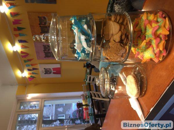 - Lokal o powierzchni 67 m2 jest w pełni wyposażony: profesjonalny ekspres do kawy, wyparz arka gastronomiczna, lodówka, sprzęt grający, projektor, komputer, terminal płatniczy, zastawa stołowa, meble, wyposażona sala zabaw dla dzieci z małpim gajem