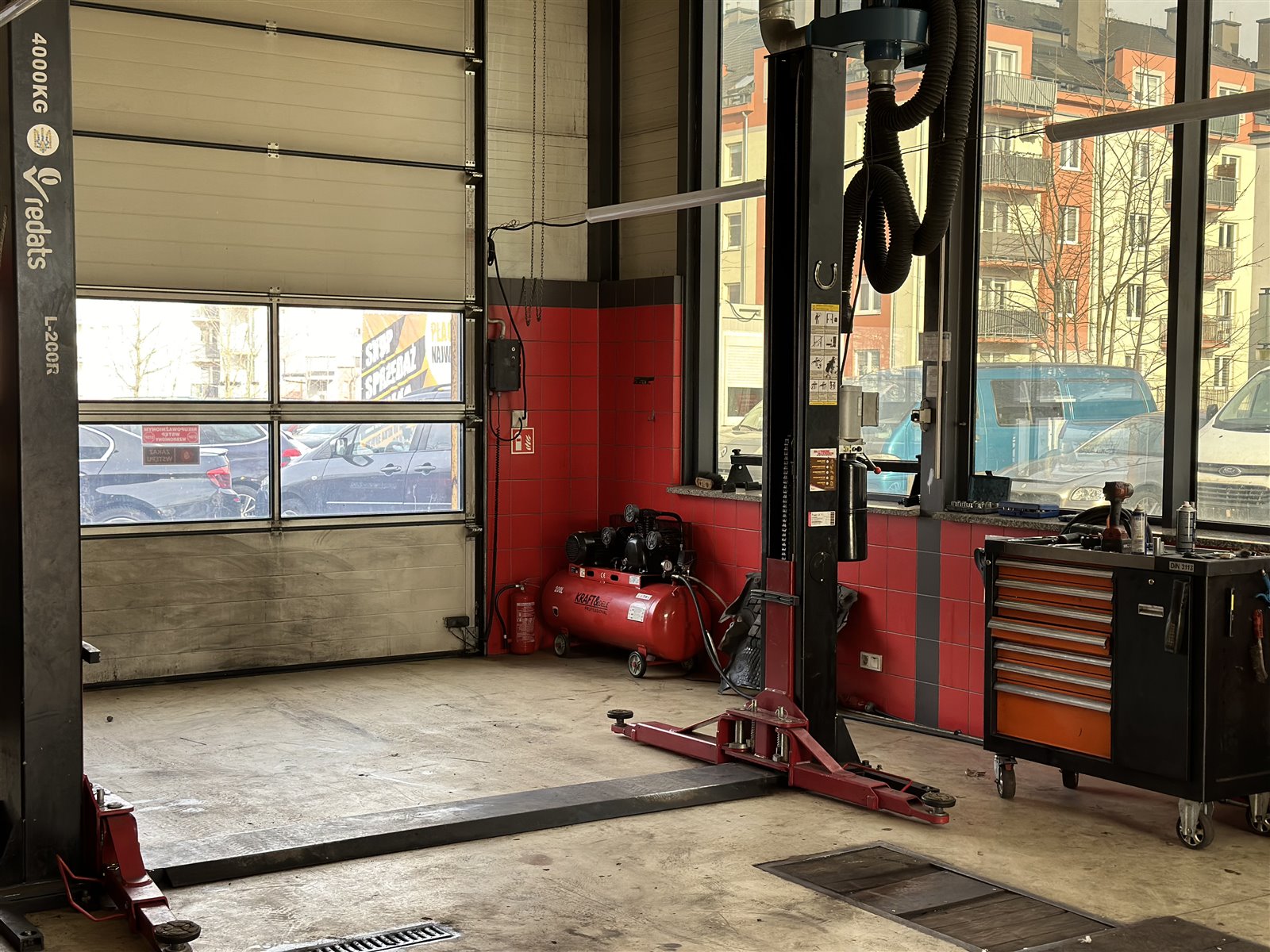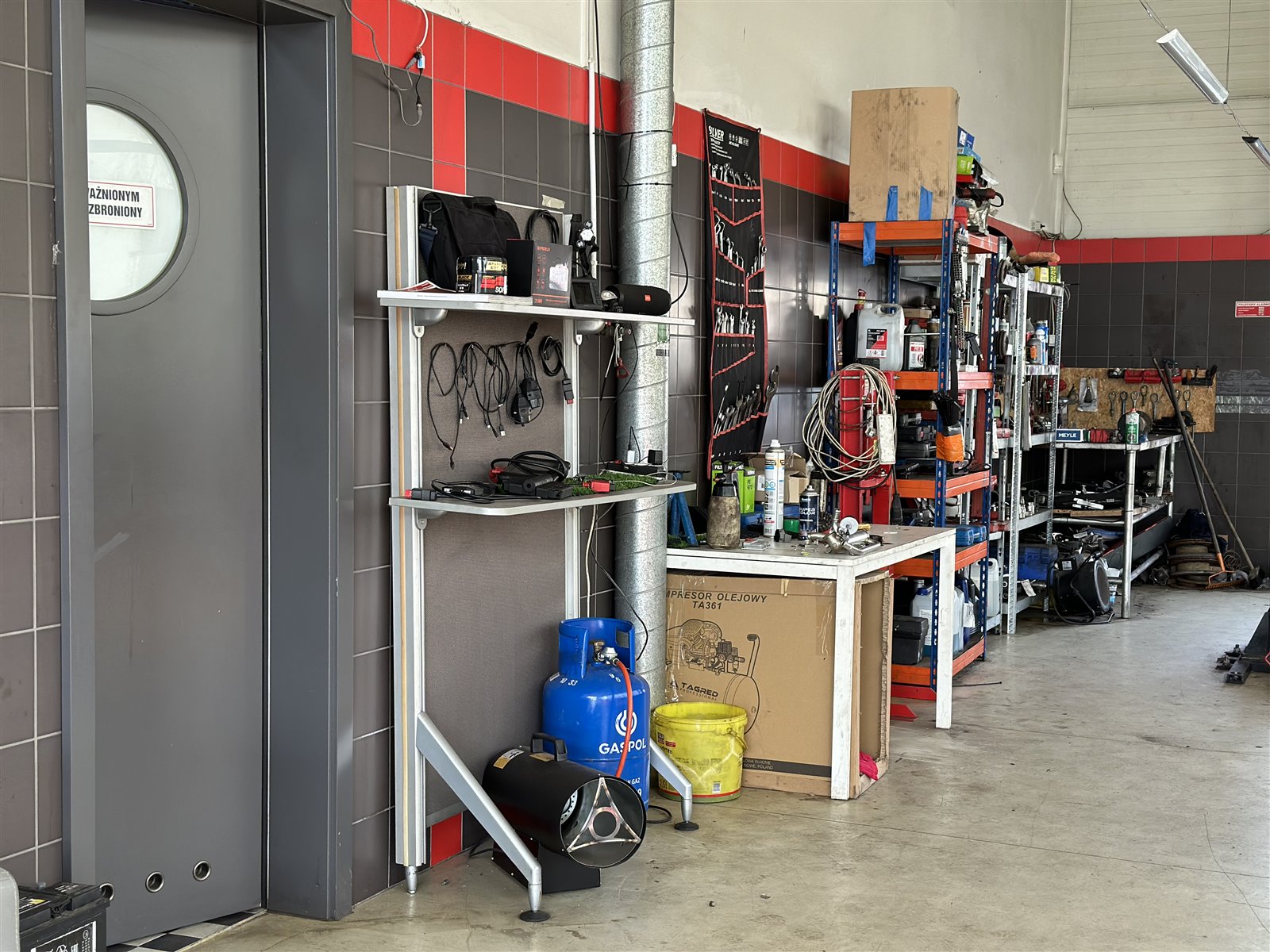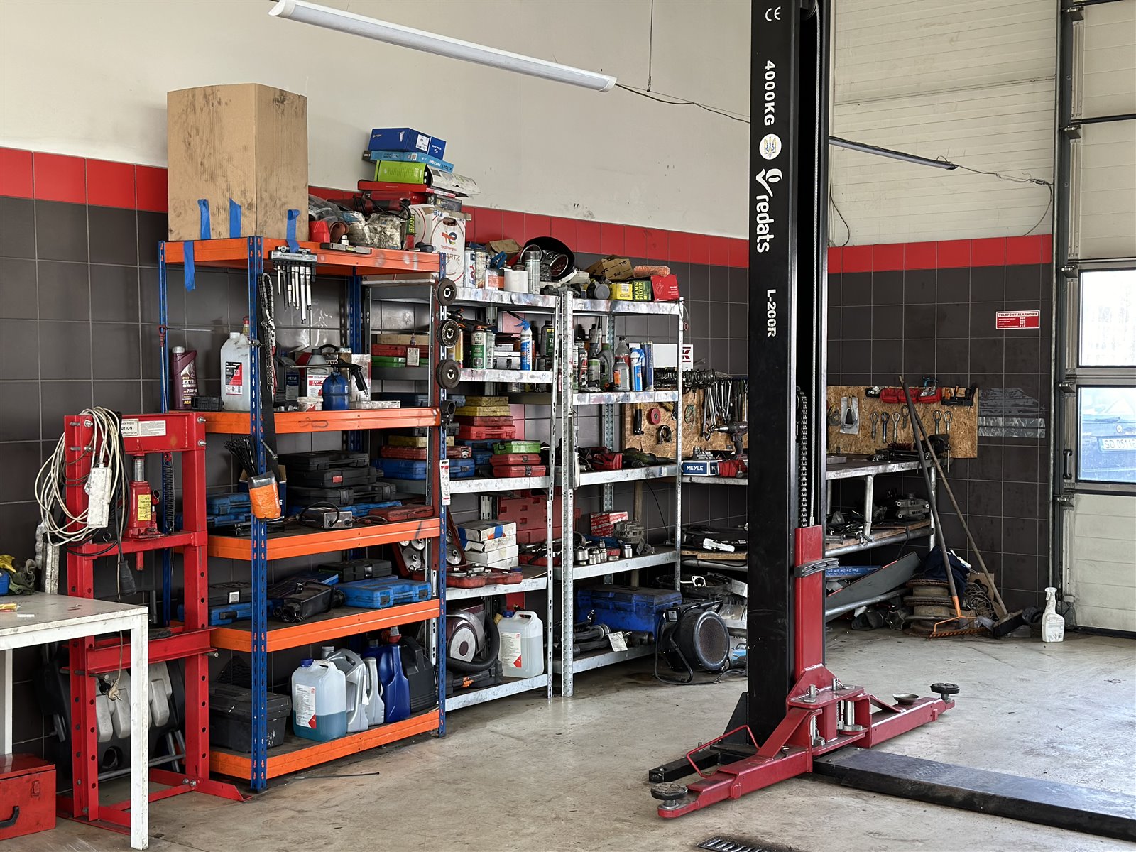 Warsztat: (podnośniki, szafki, kompresor, kluczy, diagnostyki kumpoterowa, stacja obsługi samochodowej klimatyzacji, pralka, lodówka…)