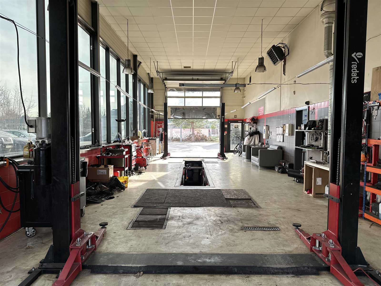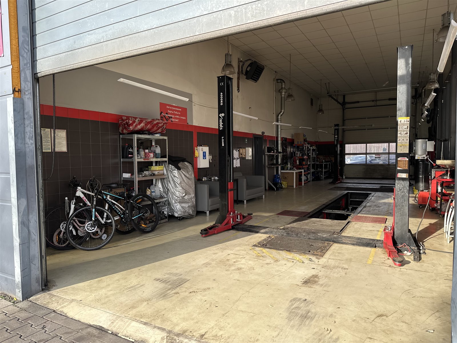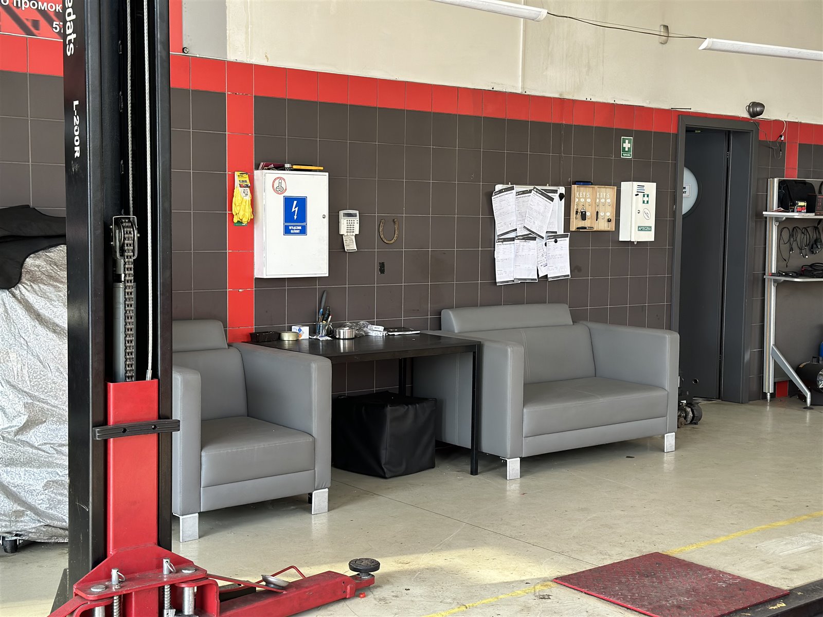 Warsztat: (podnośniki, szafki, kompresor, kluczy, diagnostyki kumpoterowa, stacja obsługi samochodowej klimatyzacji, pralka, lodówka…)