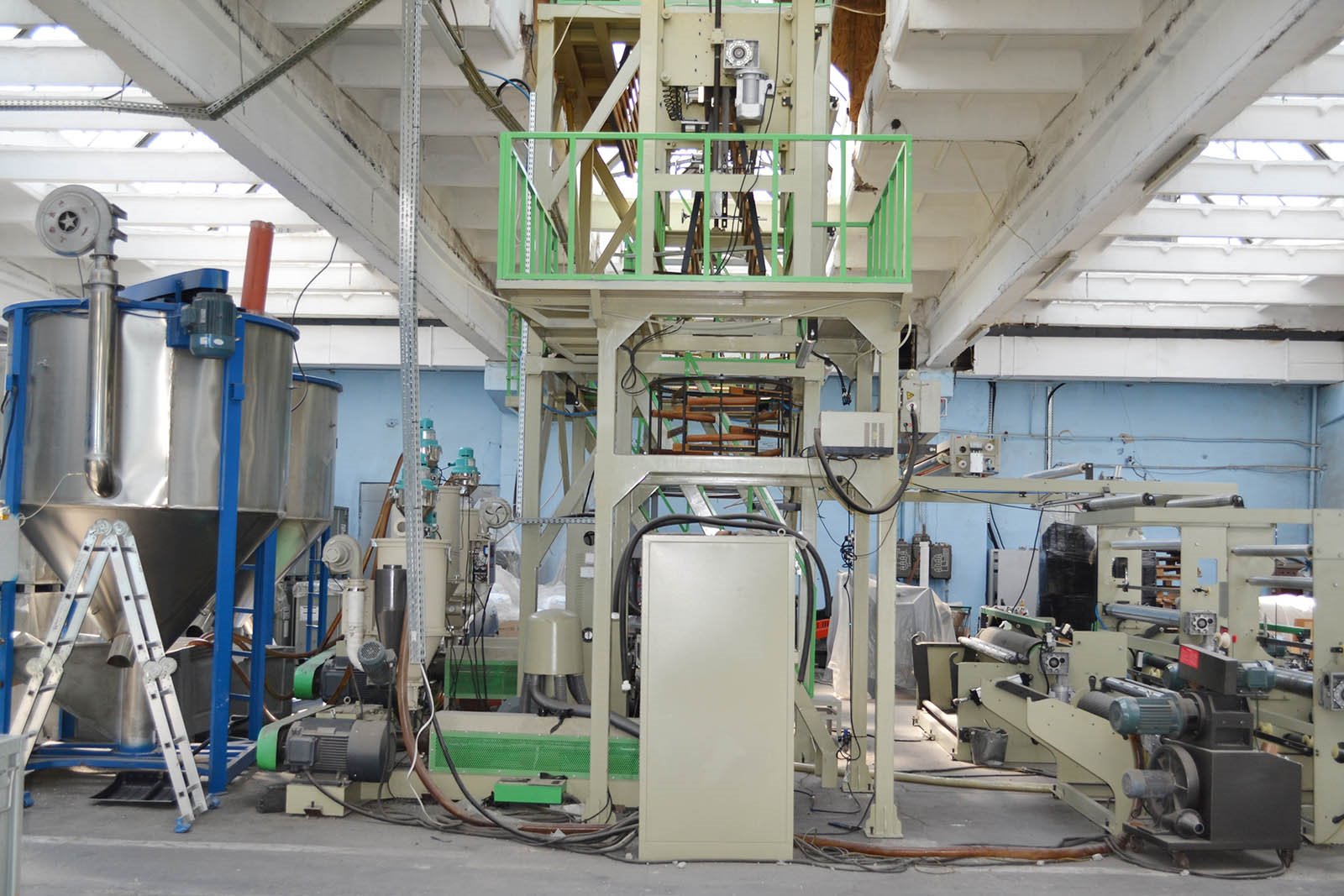 - Linia do rozdmuchu folii MD-HL60 z mikserem i suszarką tworzyw.