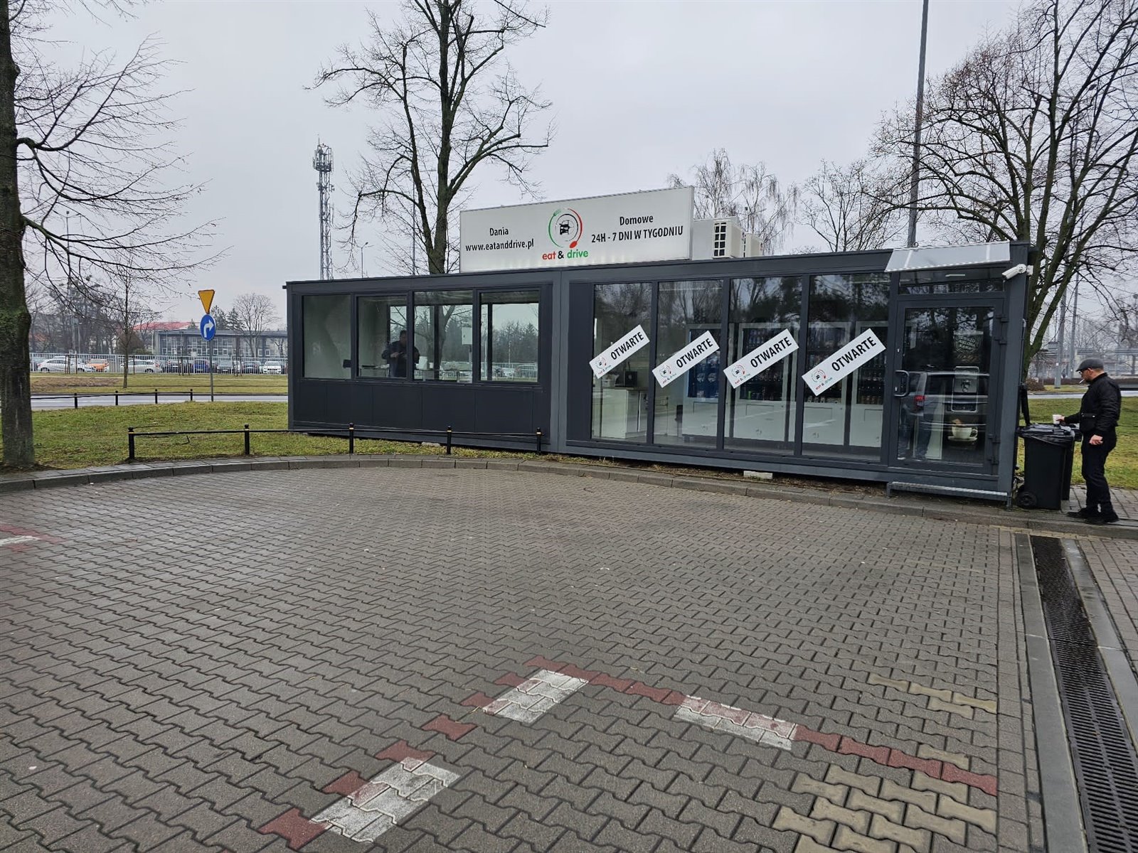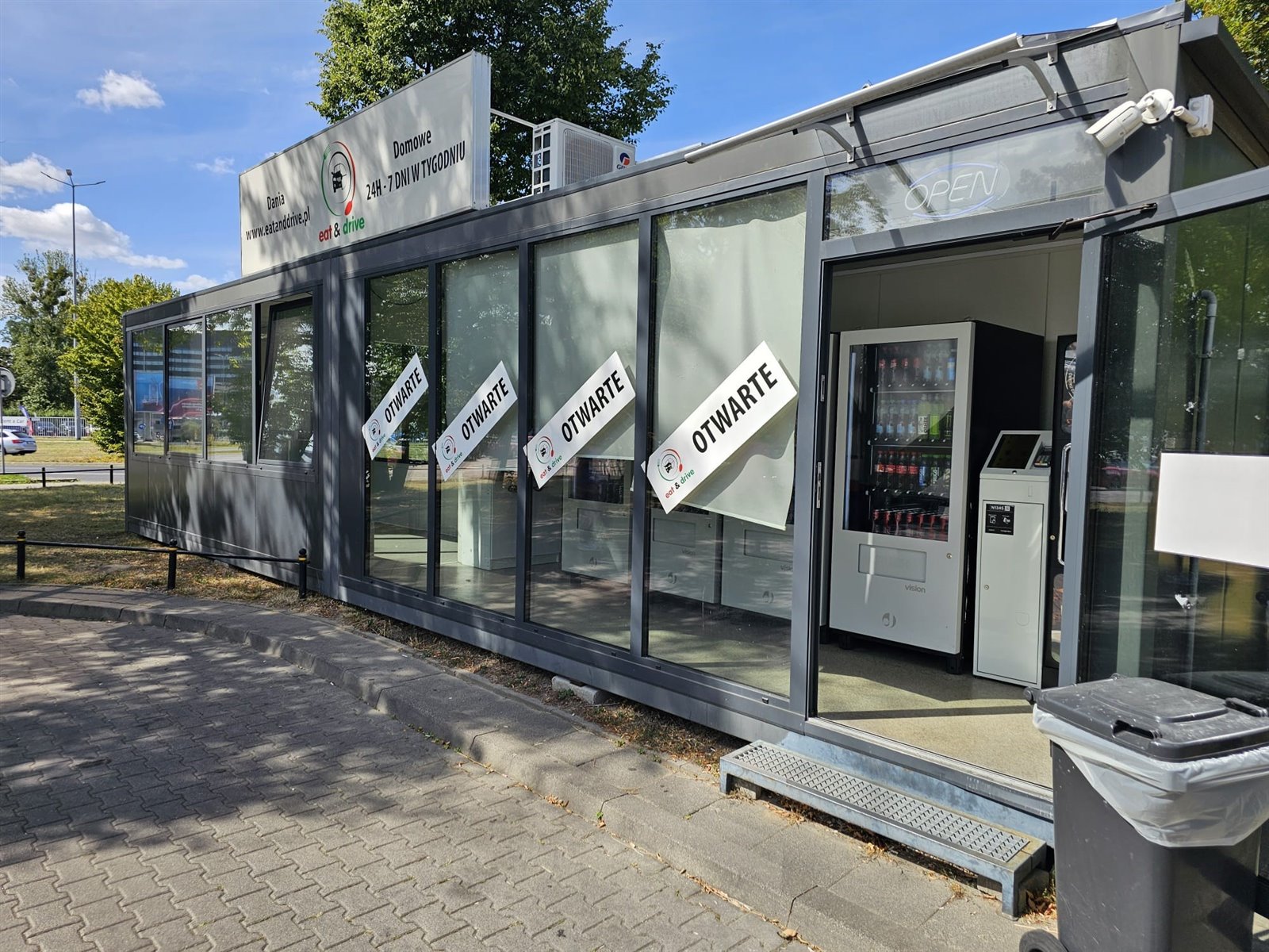 Kompletny sklep vendingowy kontener 30m2 z 4 automatami totemem reklamowym i kawiarką