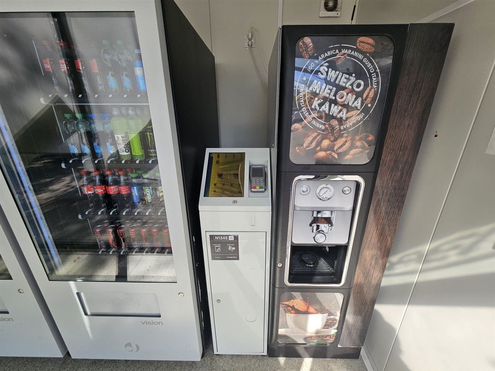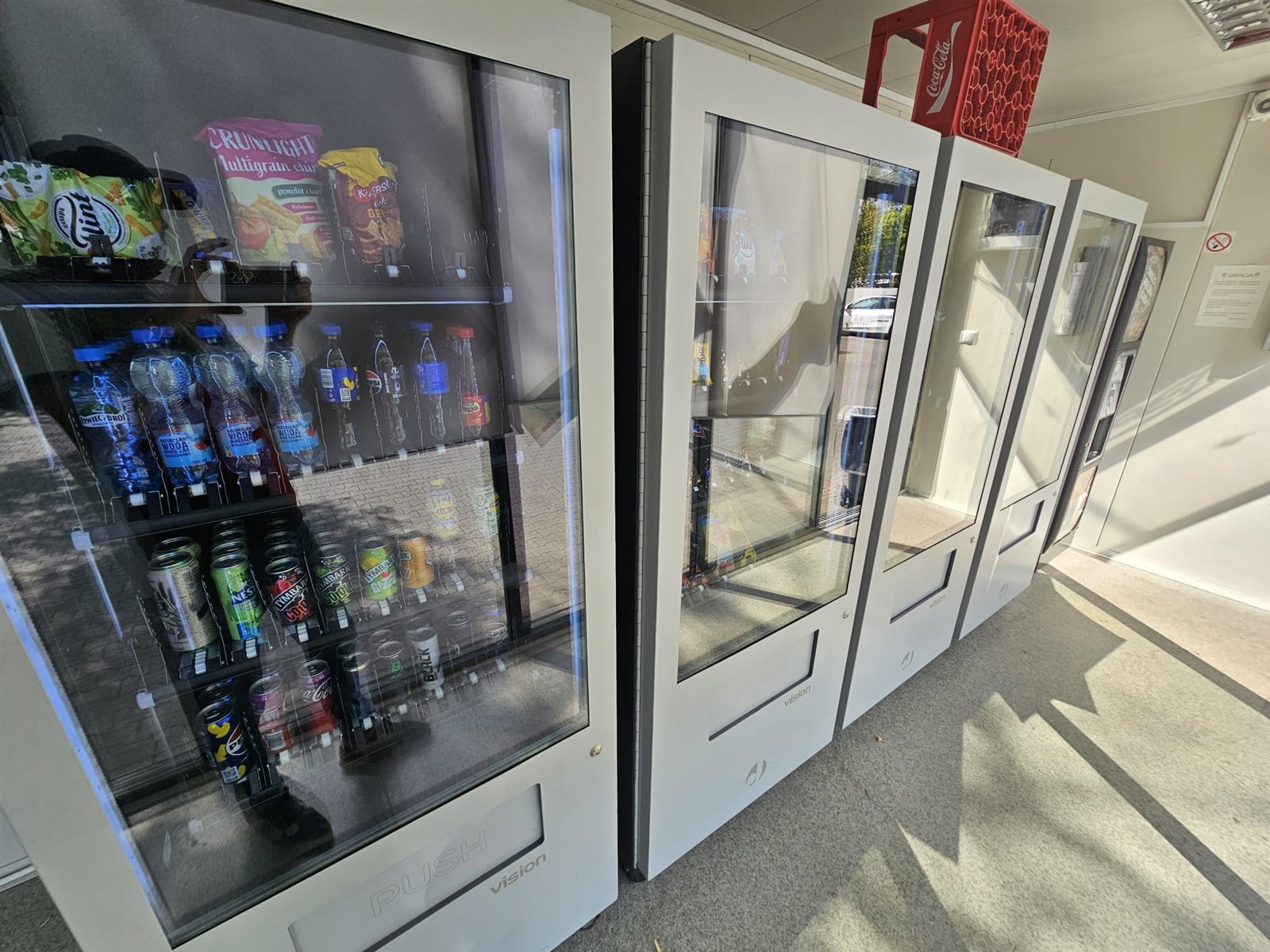 Sklep posiada część z maszynami jako część automatycznego sklepu oraz drugą część jako pomieszczenie socjalne.