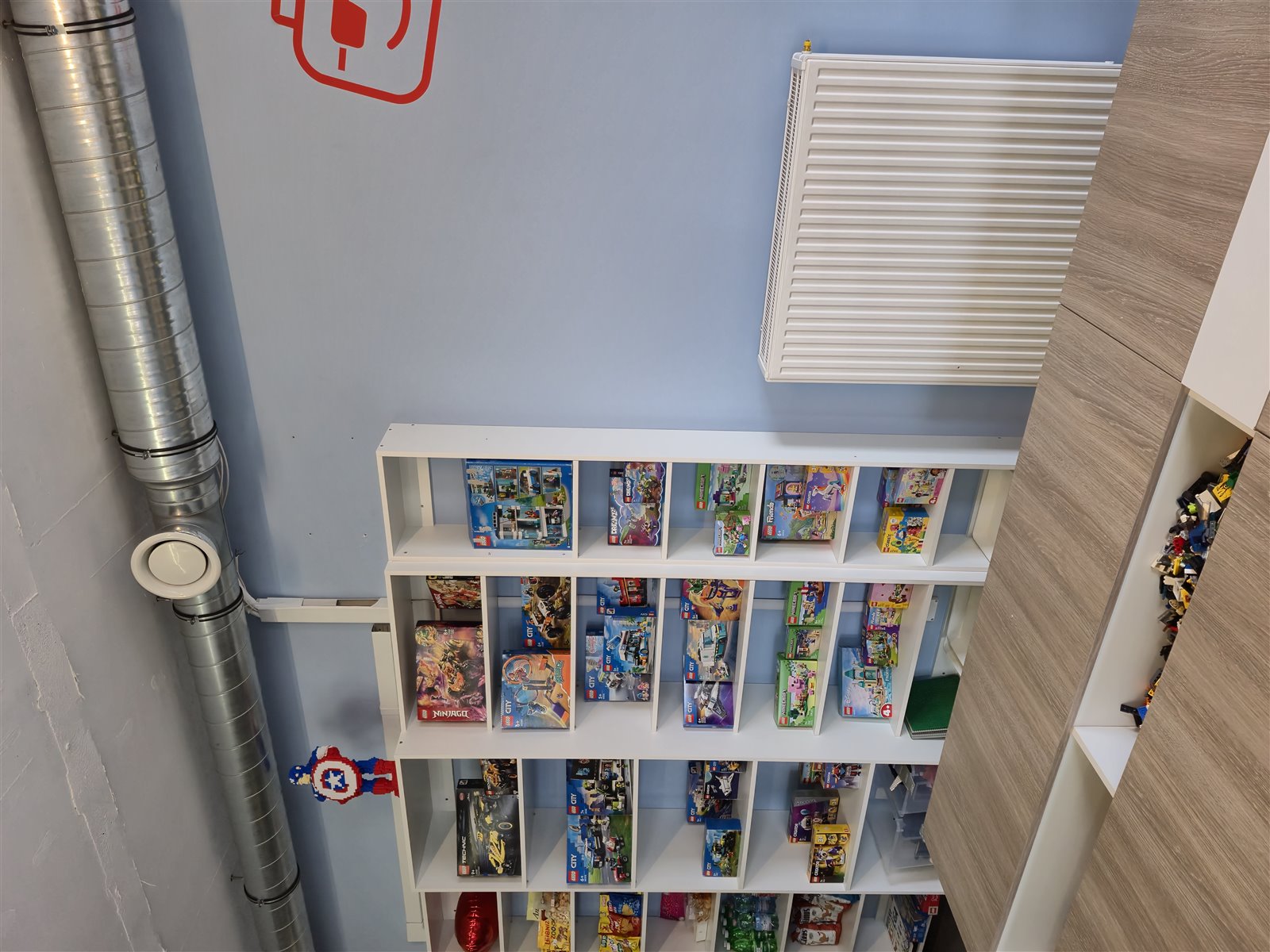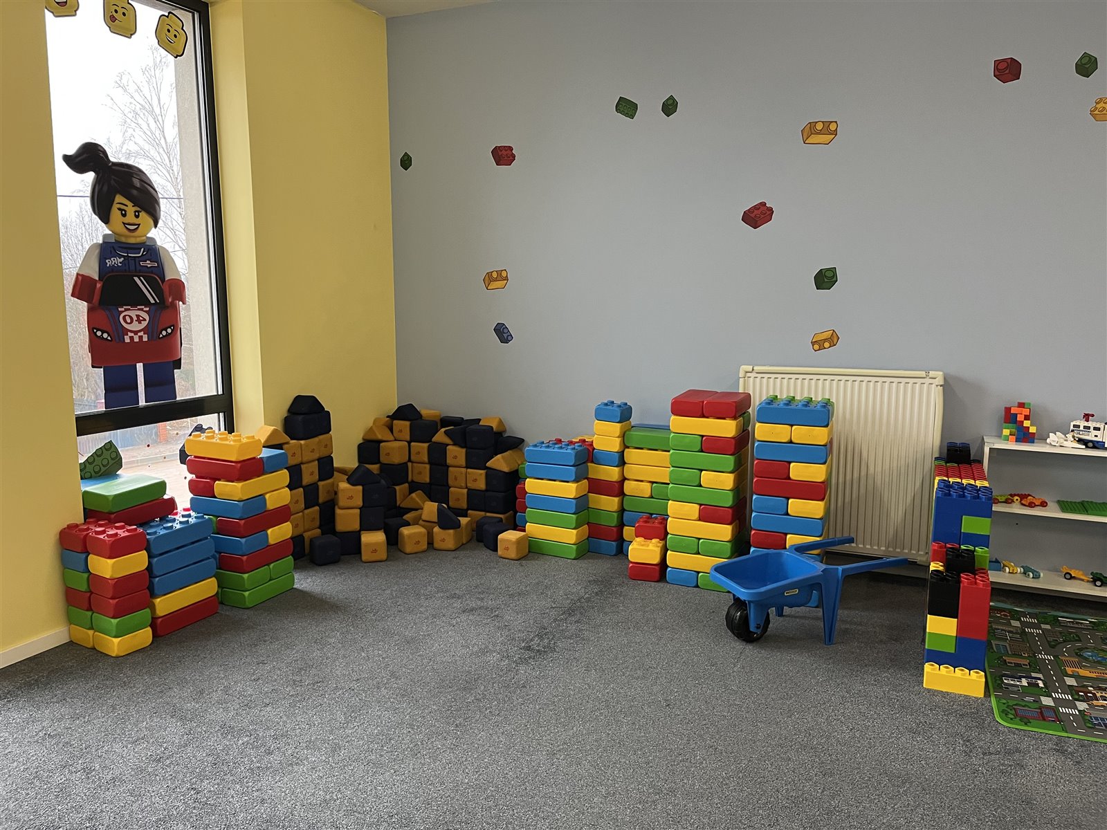 • Strefa dla młodszych dzieci – wyposażona w klocki Duplo, idealna dla najmłodszych, którzy dopiero zaczynają swoją przygodę z budowaniem.