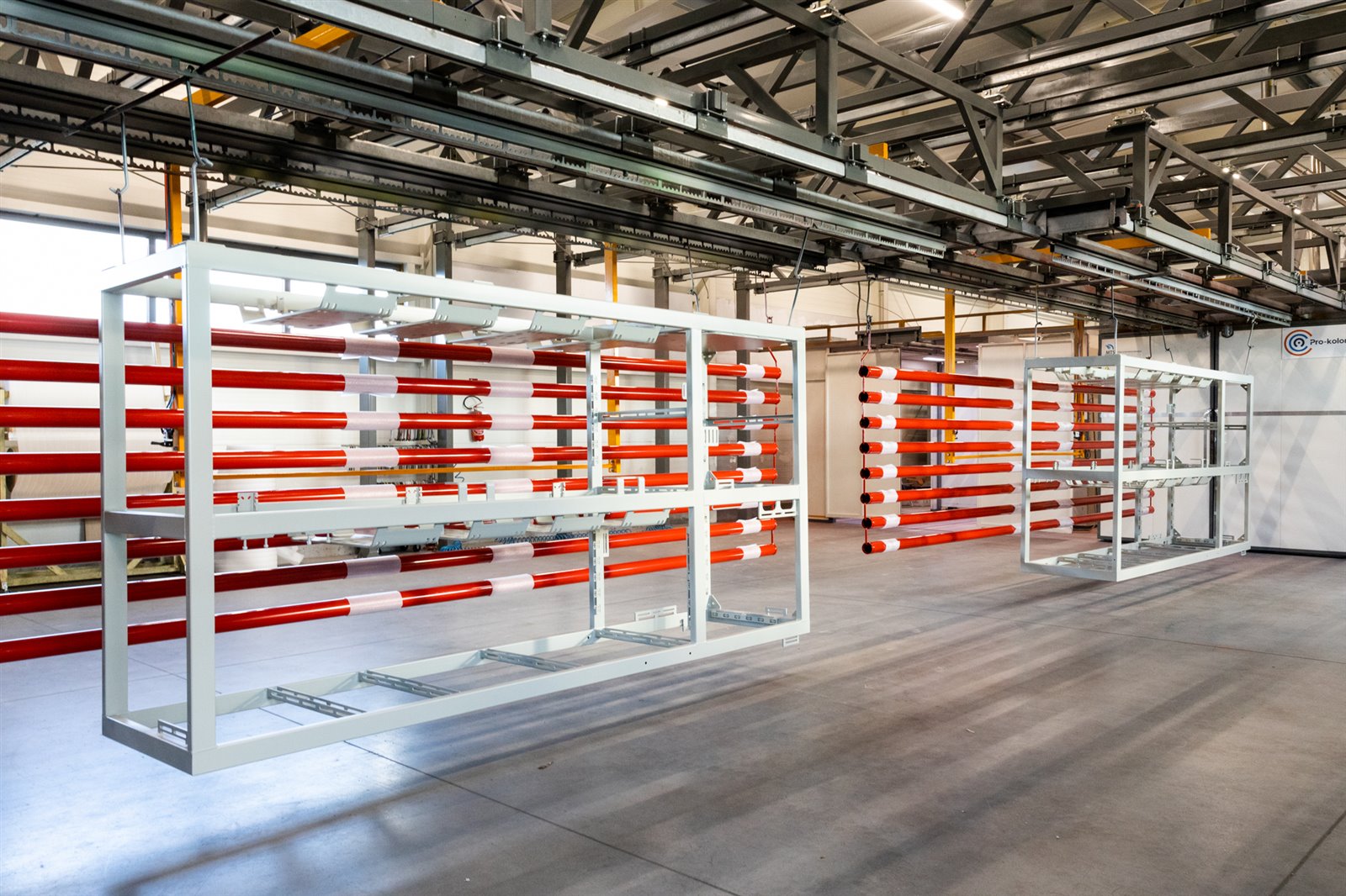 - piec do polimeryzacji farby proszkowej o wymiarach (dł. szer. wys.) 1200 cm x 230 cm x 250 cm z możliwością zamknięcia połowy pieca jeżeli malowane są krótsze elementy.