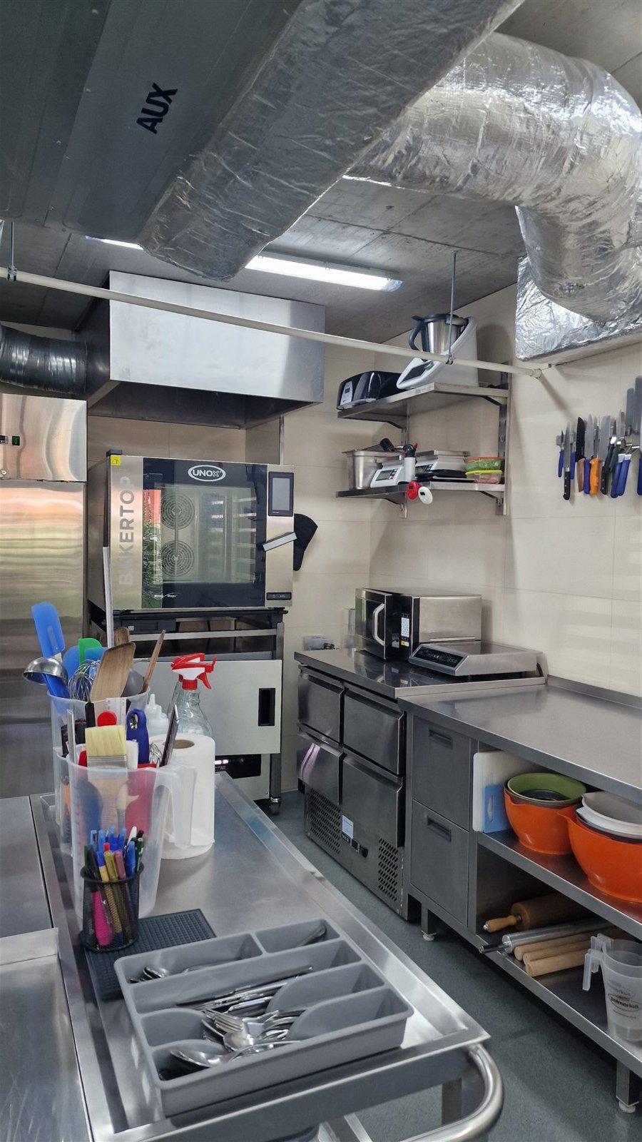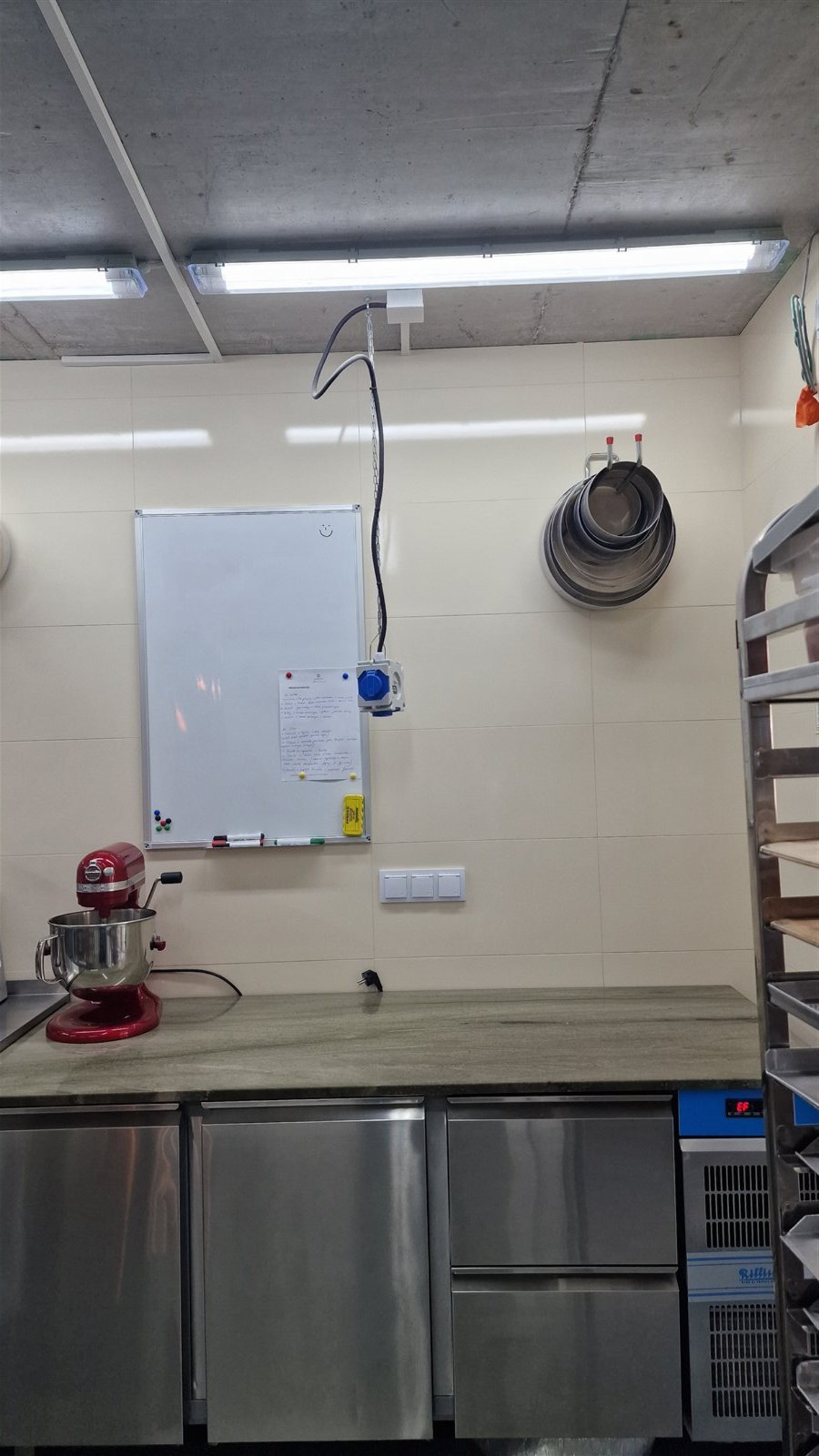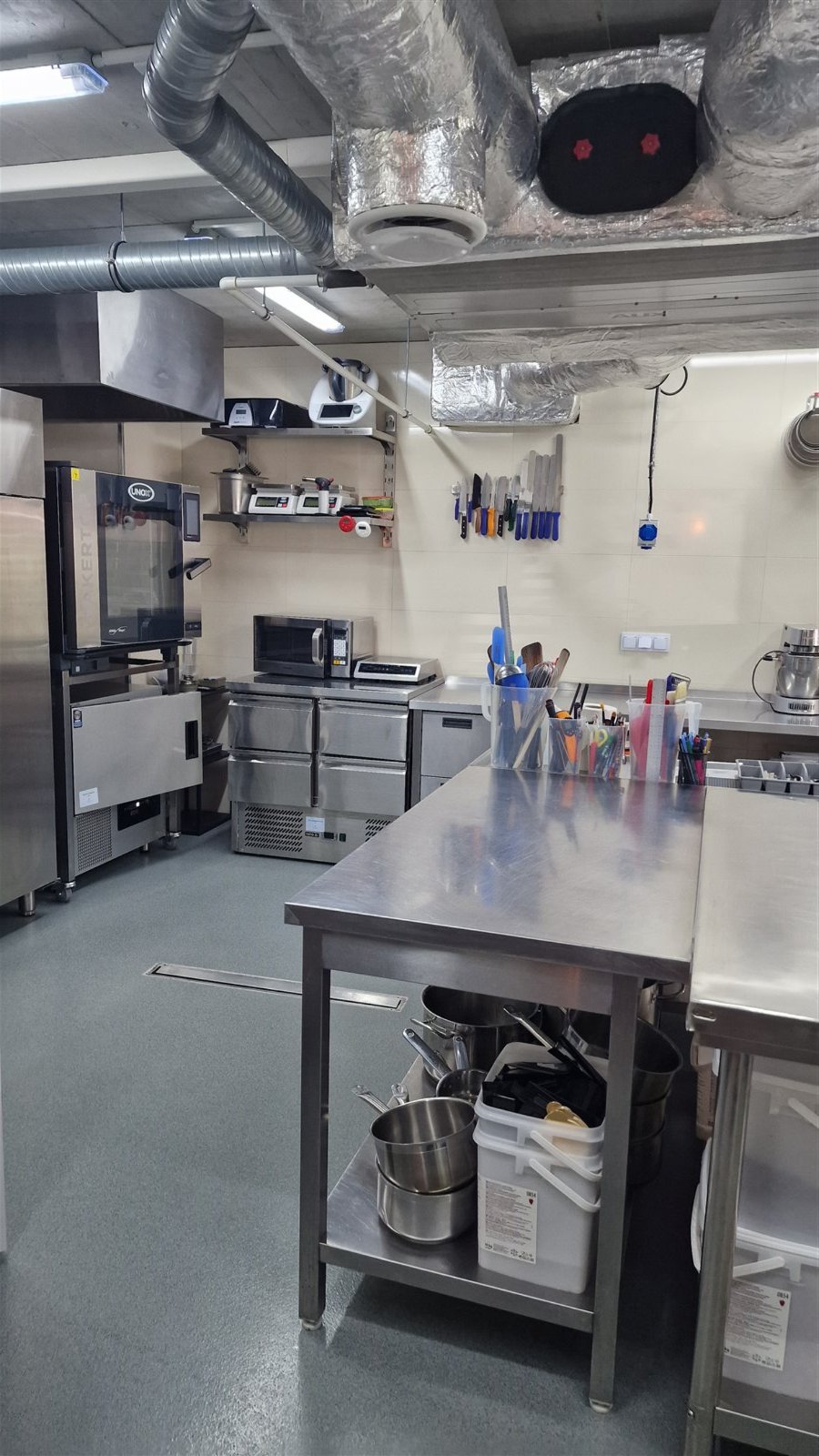 Najwyższej jakości sprzęt gastronomiczny, w tym chłodnie, mroźnie, blaty nierdzewne, wałkowarka do ciasta, mroźnia szokowa, piec konwekcyjny piekarniczy UNOX, wyparzarka i inne (SAGI, Electrolux, RM Gastro), roboty kuchenne Kenwood, Kitchen Aid i RM Gastro, obudowana nowa witryna cukiernicza (2 m długości) włoskiej firmy IFI DROP. Wszystko, co potrzebne do profesjonalnej produkcji cukierniczej jest w bardzo dobrym stanie, duża ilość mat silikonowych do wypieków, forem silikonowych do monoporcji (Silikomart, Pavoni, De Buyer), ringów tortowych i do tart i tzw. drobnicy.
