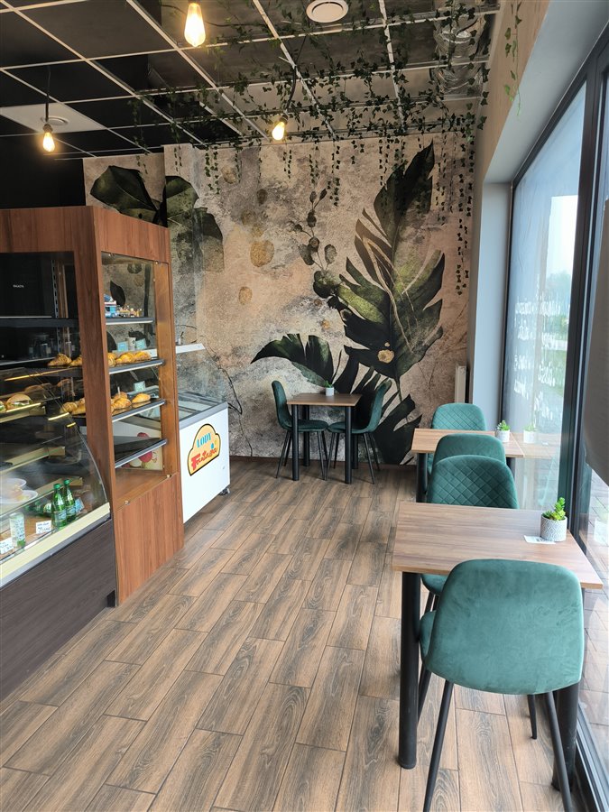 Lokal składa się z sali głównej (6 miejsc siedzących, możliwość dostawienia 4 kolejnych), kuchni, magazynu, pomieszczenia socjalnego, łazienki dla personelu. Do przejęcia wyłącznie z całym wyposażeniem.