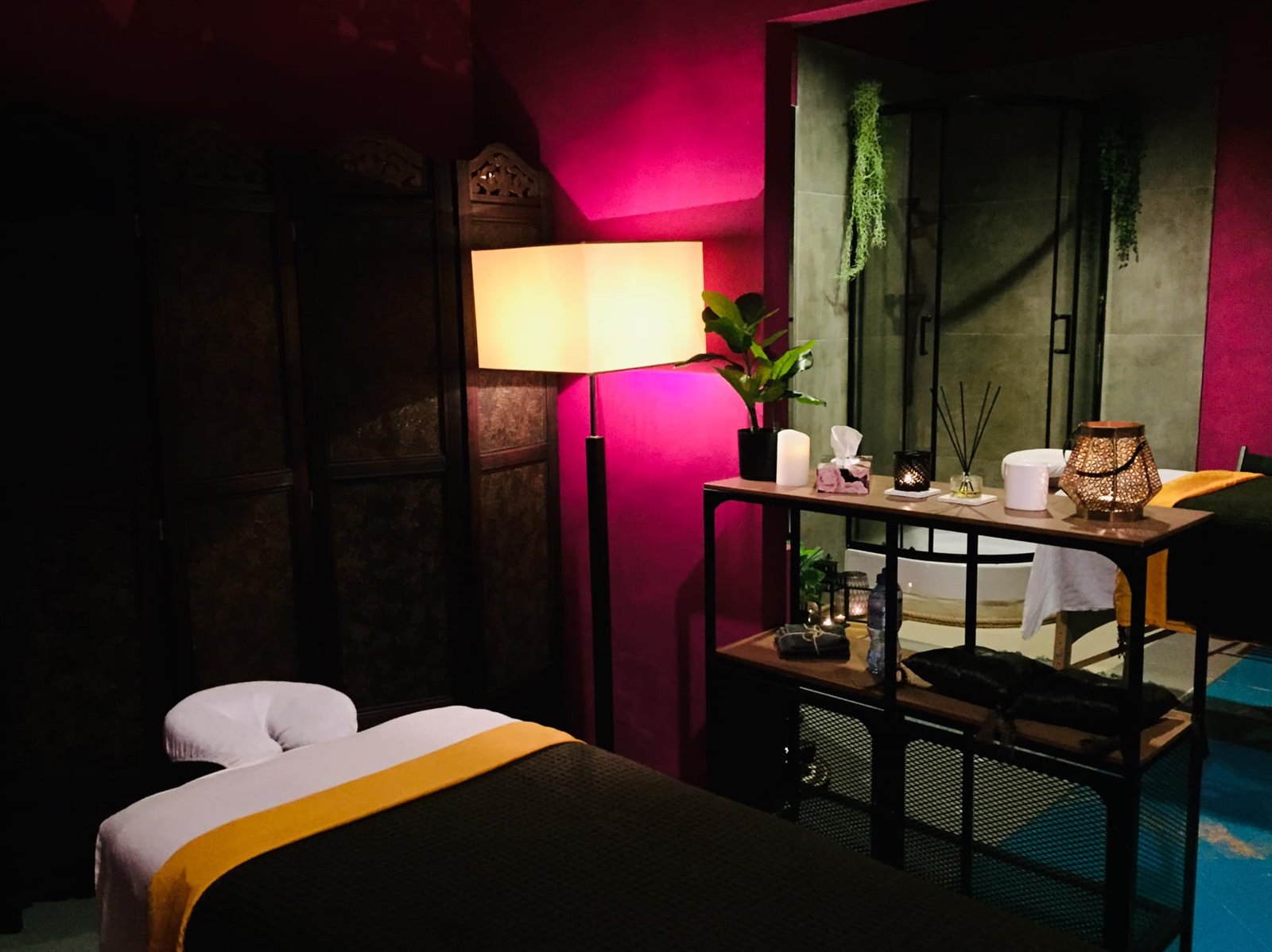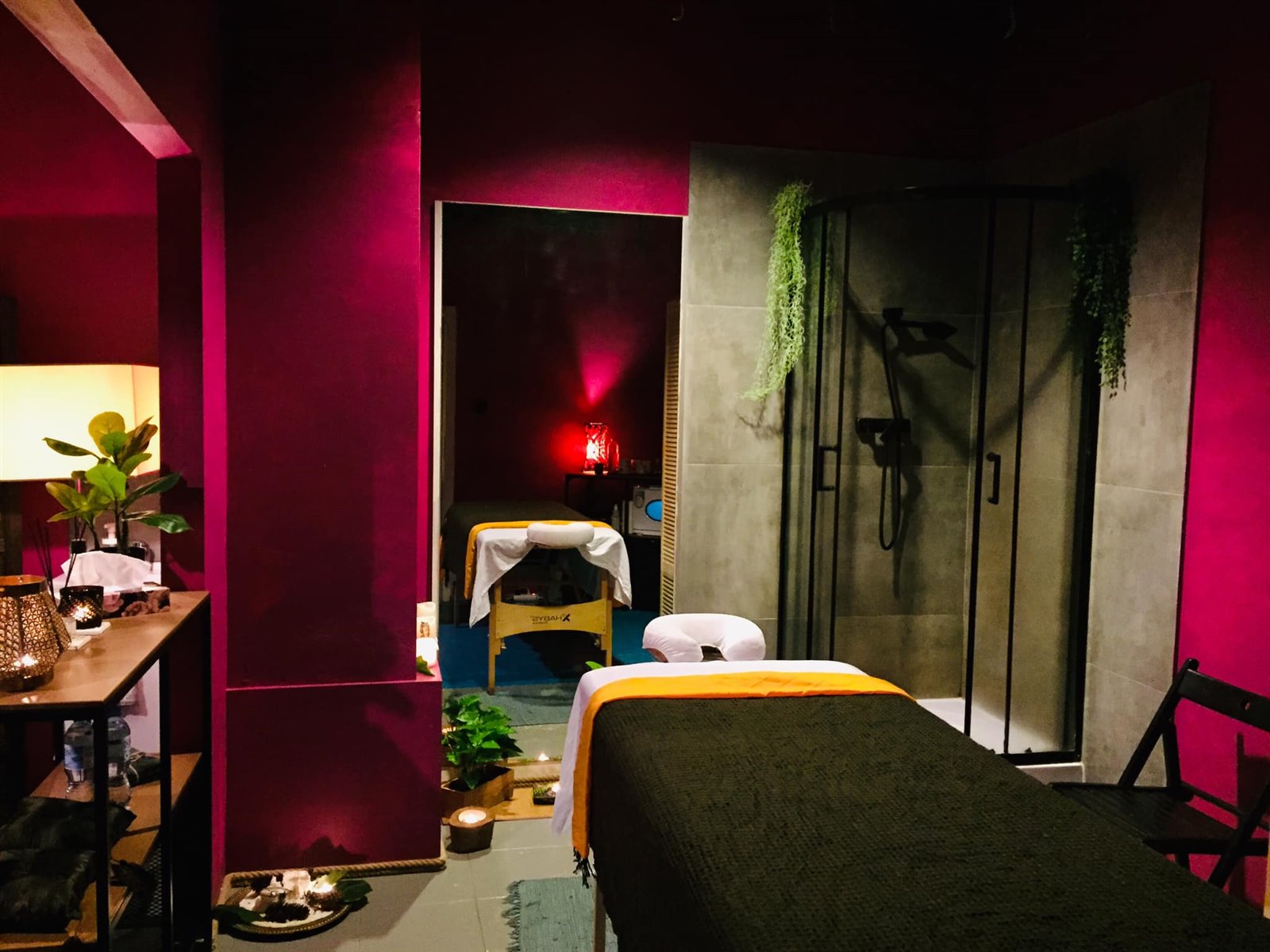 Lokal w pełni przystosowany do masaży, zabiegów na ciało i twarz, każde pomieszczenie zawiera umywalkę, jeden z gabinetów posiada prysznic.