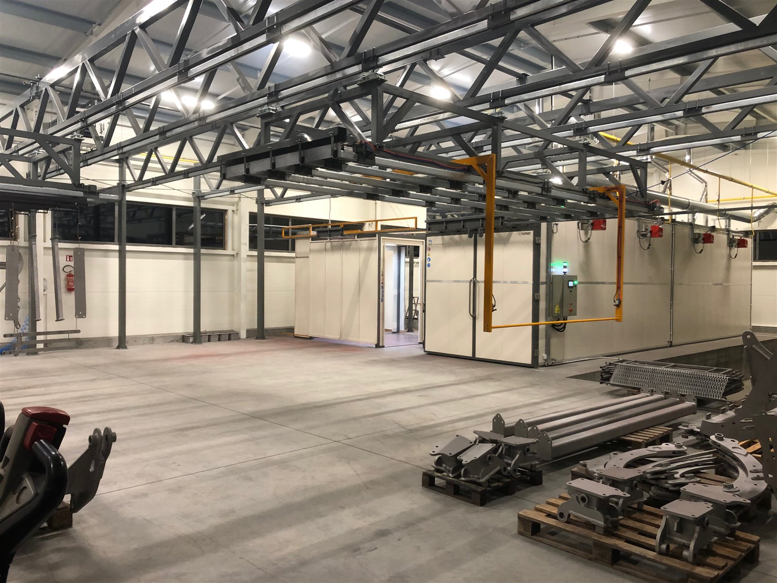 - piec ROMER do polimeryzacji farby proszkowej o wymiarach (dł. szer. wys.) 1200 cm x 230 cm x 250 cm z możliwością zamknięcia połowy pieca jeżeli malowane są krótsze elementy;