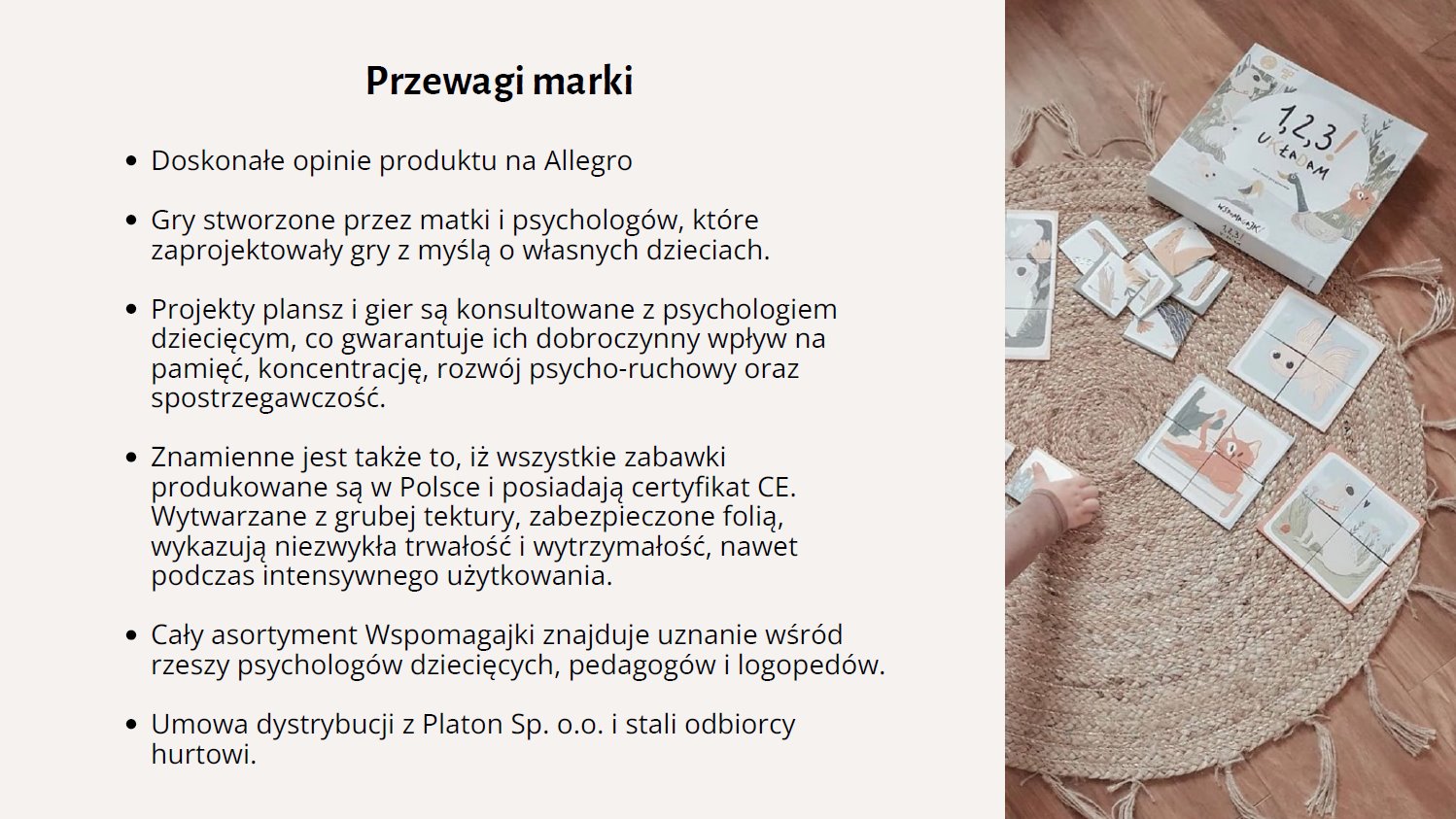 Na sprzedaż marka gier rozwijających dla dzieci Wspomagajki. Marka z wyrobioną marką ;) bardzo pozytywne opinie na Allegro.