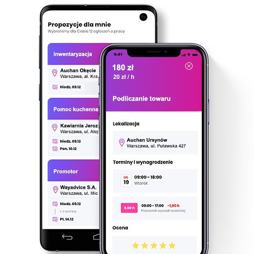 * Dla studentów i uczniów – jest to zupełnie nowa aplikacja gromadząca wszystkie elastyczne oferty pracy w dowolnych terminach. Dla naszych Pracowników ważna jest niezależność oraz dostęp do ofert z różnych branż, dzięki czemu mogą złapać nowe doświadczenia i nauczyć się nowych rzeczy. Nasze motto brzmi „Pracuj gdzie chcesz, kiedy chcesz i ile chcesz – Ty decydujesz.”.