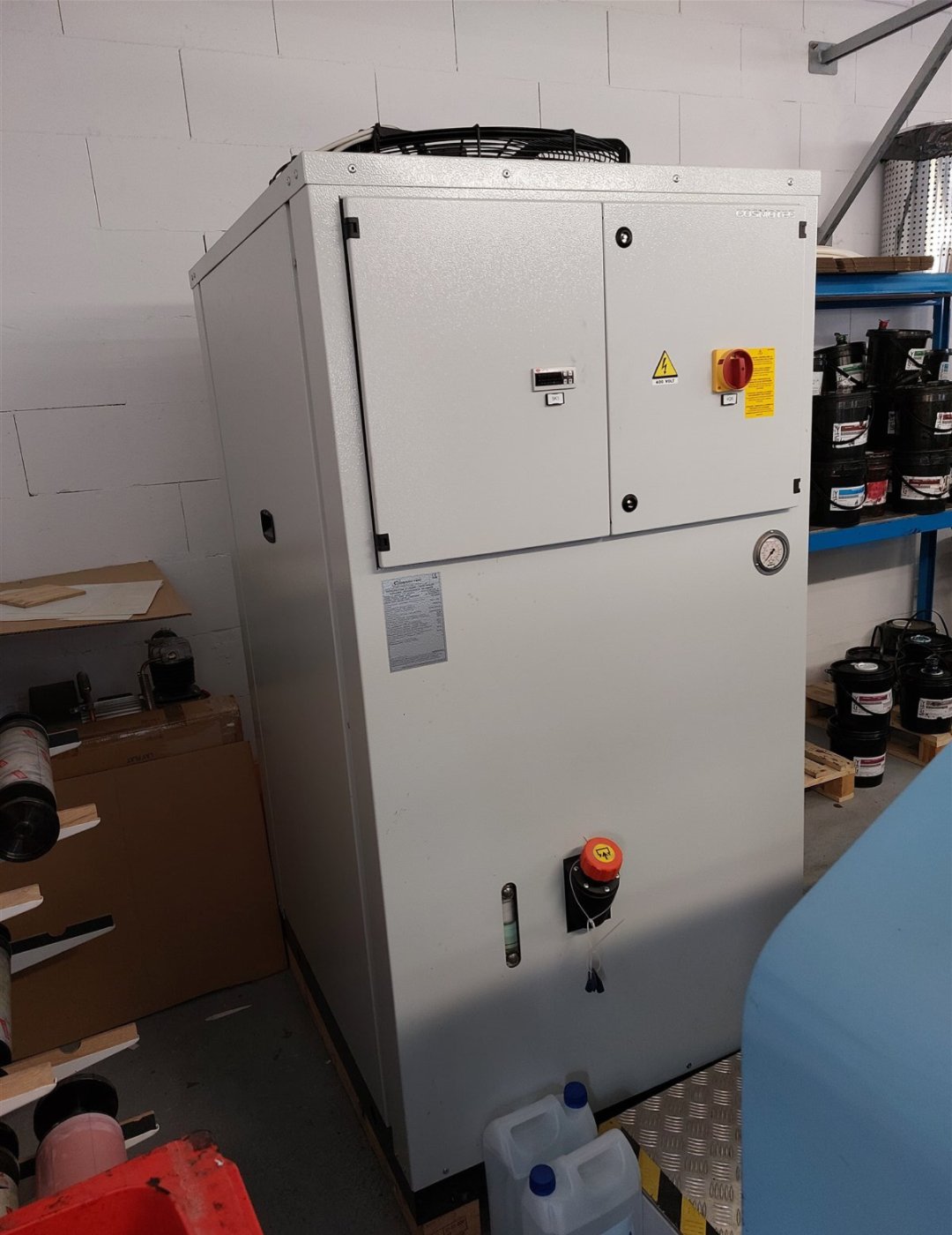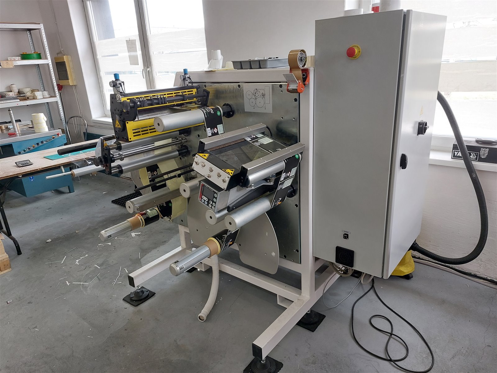 • funkcje: wstępne pasowanie, kontrola wideo, sterowanie centralne oraz indywidualne, wałki chłodzone, ruchome sekcje laminowania i druku od strony kleju, 1 stacja wykrojnika