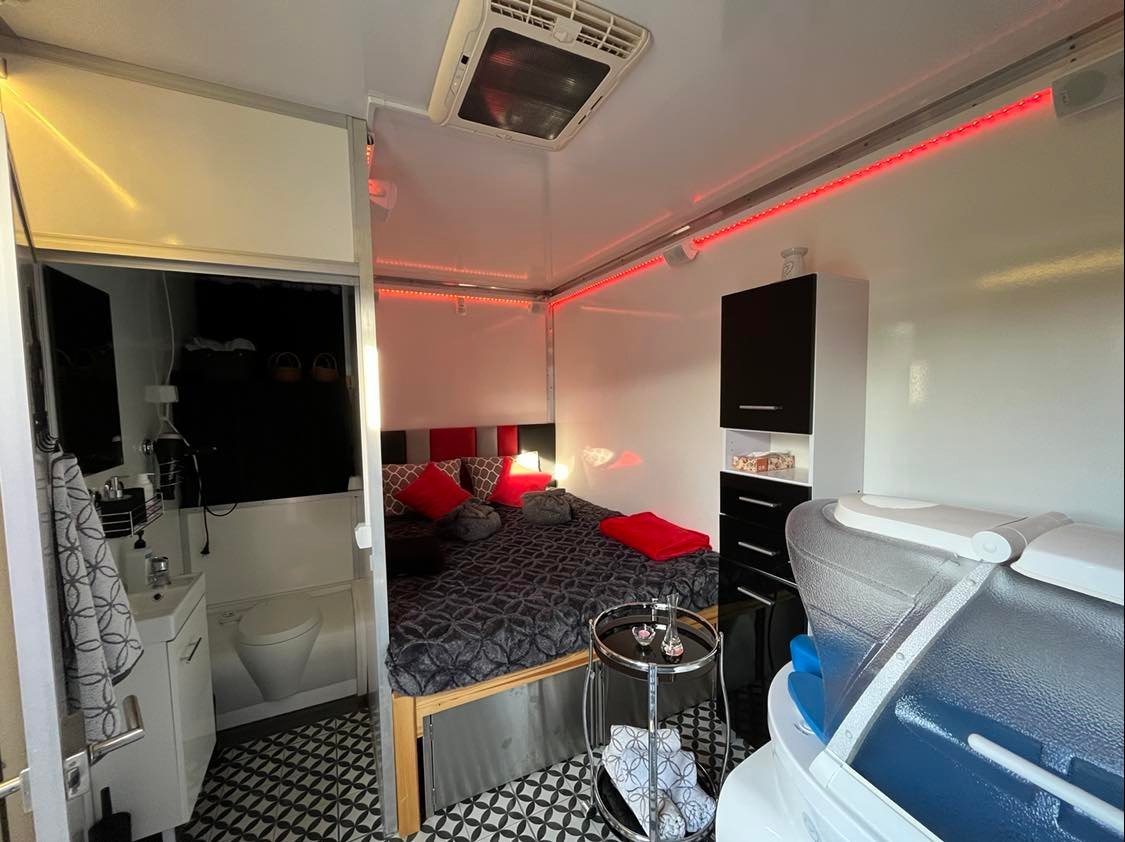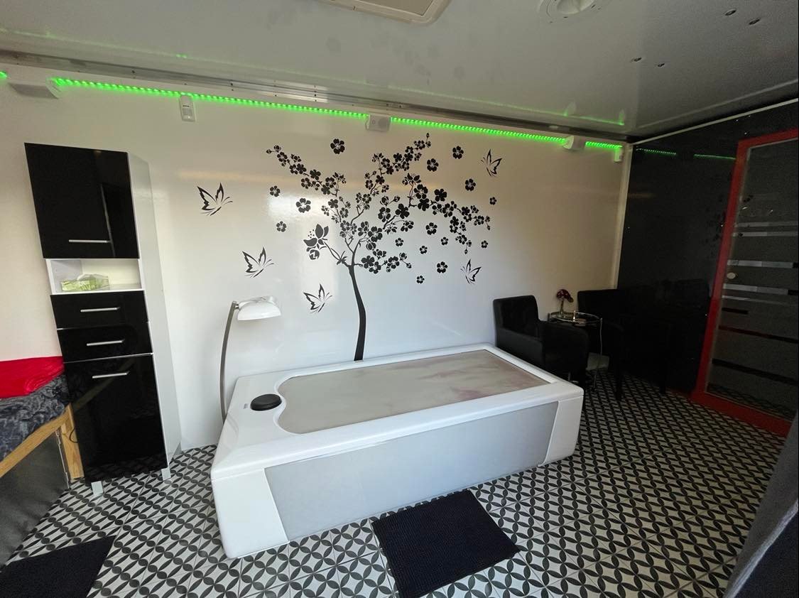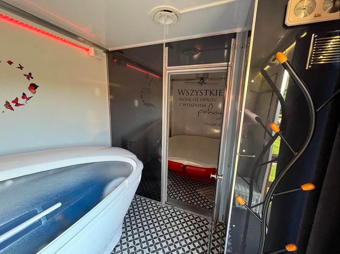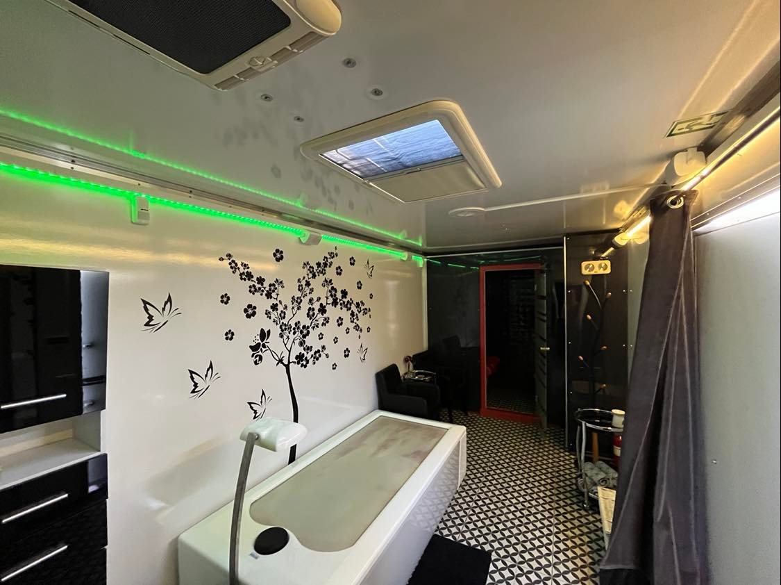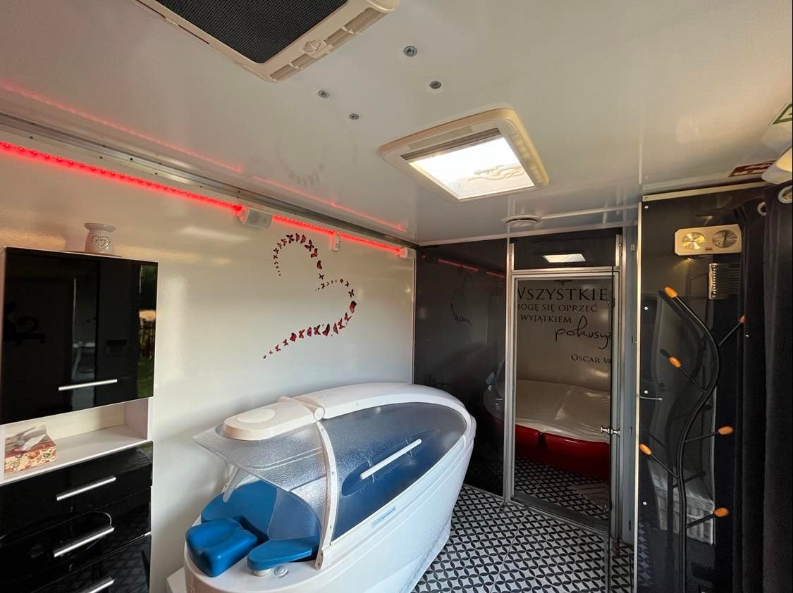 Przyczepa SPA1, wyposażona w 2 profesjonalne urządzenia do świadczenia usług SPA: