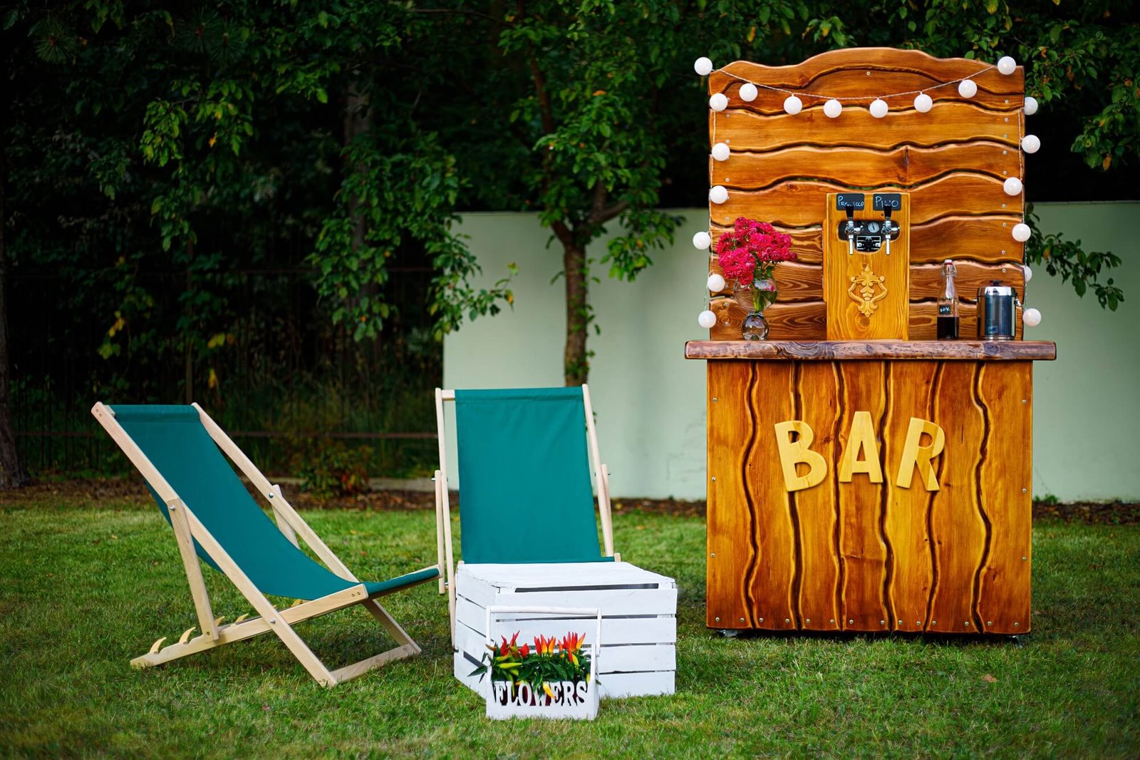 - dodatki do baru: zestaw 4 leżaków, skrzynka, sztuczne kwiaty, lampki, potykacz