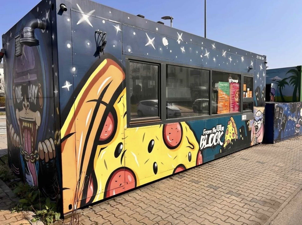 Lokal działa w formie modułu kontenerowego i jest kompletnie wyposażony w nowoczesny sprzęt gastronomiczny.