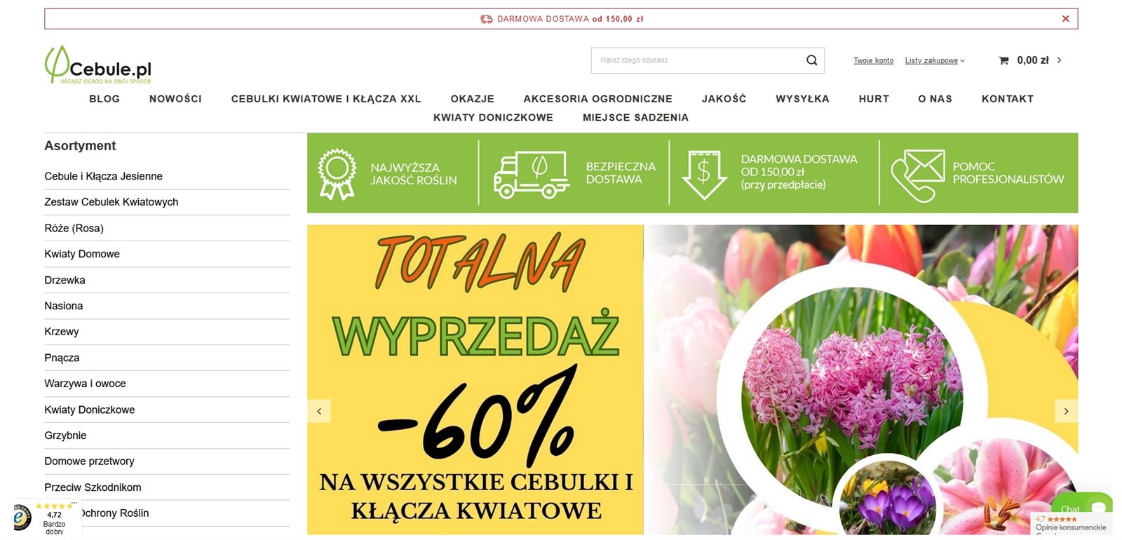 4. Dodatkowe kanały sprzedaży: Sklep zintegrowany jest z popularnym kontem Allegro cebule_pl .