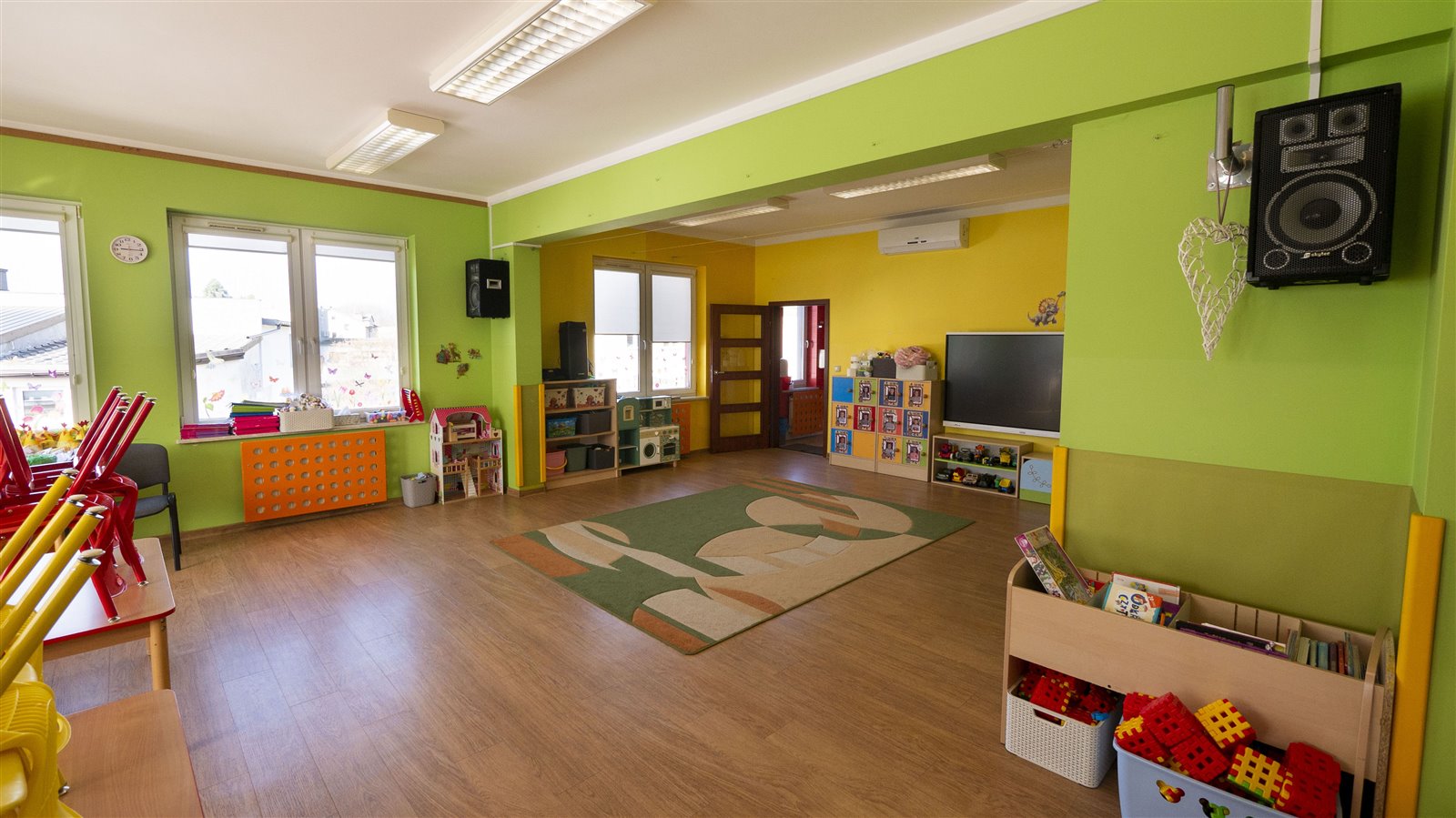 Budynek w pełni przystosowany do prowadzenia działalności przedszkolnej – spełnia wszystkie wymagania sanitarne i funkcjonalne (klasa pożarowa ZL-2).