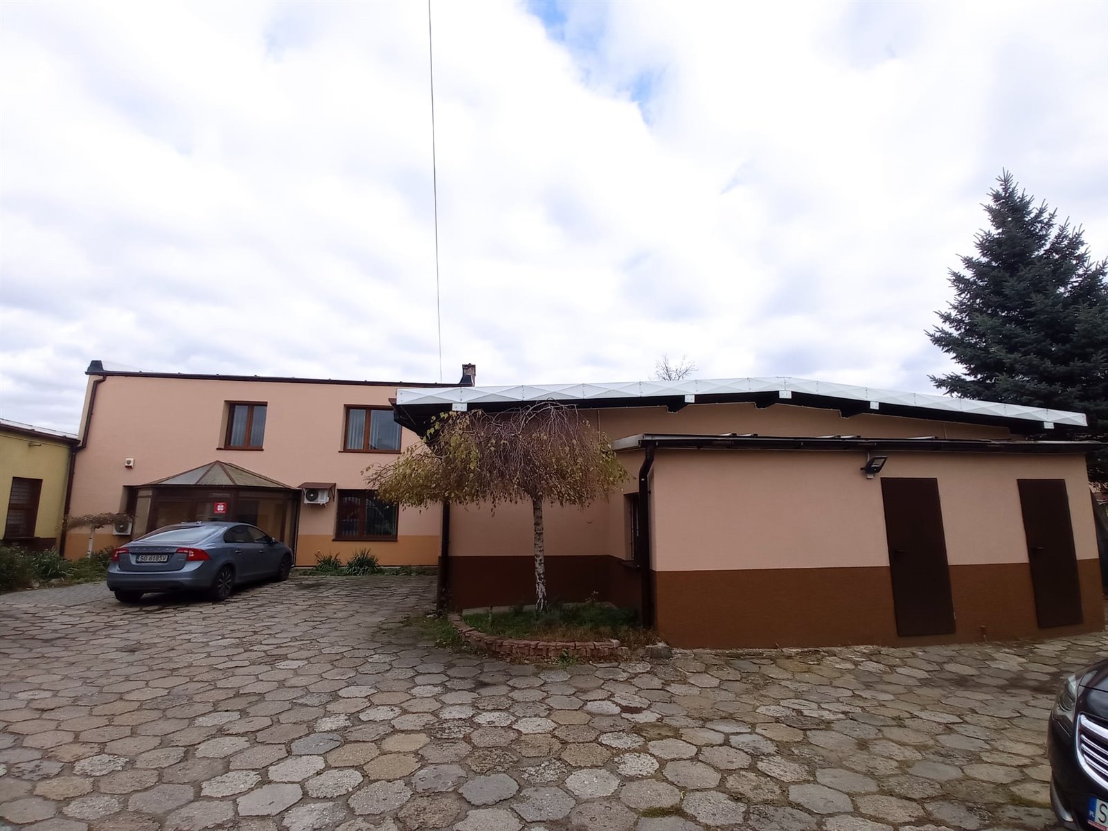 Na terenie działki znajduje się utwardzony plac manewrowy z miejscami postojowymi, zapewniający wygodny dostęp dla pojazdów dostawczych i klientów.
