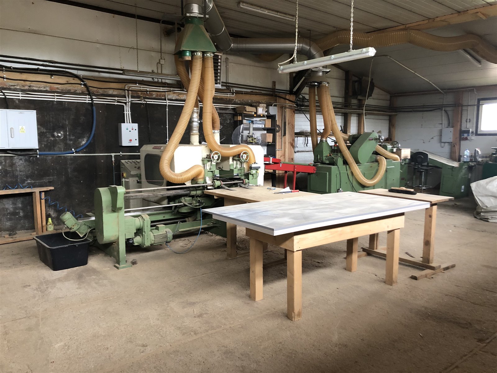 • pełne zaplecze maszyn stolarskich: formatówki, frezarki, czopiarki, szlifierki, wielopiła, maszyny do mikrowczepów, prasy do klejenia, ostrzarki itp.