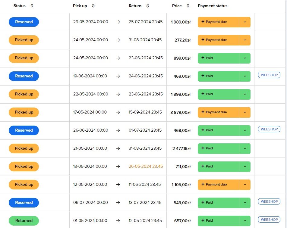 - Prosta obsługa wynajmu: zbieranie zamówień i grafikowanie urządzeń odbywa się na prostym i czytelnym oprogramowaniu.