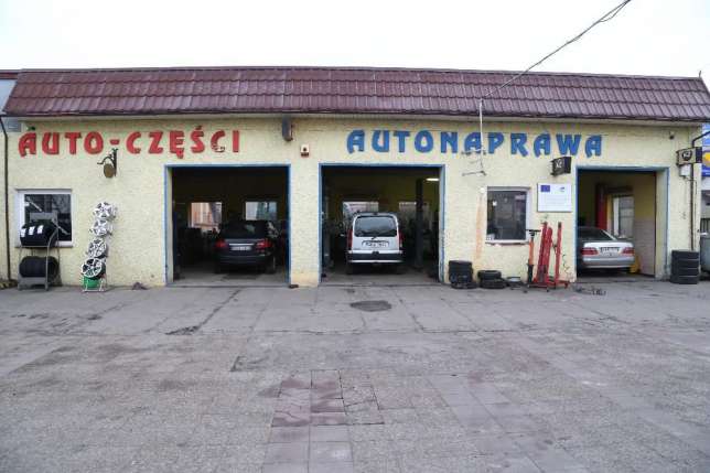 Warsztat posiada 3 stanowiska, w tym jedno z kanałem, obok mieszczą się pomieszczenia socjalne, w tym poczekalnia dla klientów oraz pomieszczenia sklepowe.