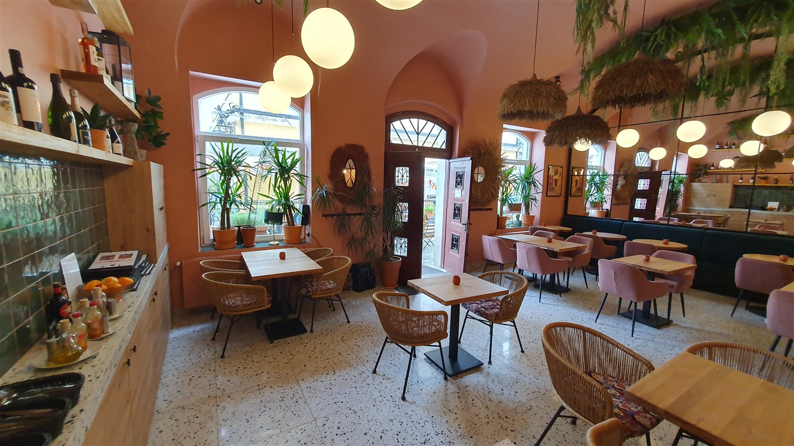 Dla wygody gości w restauracji przygotowano około 40 miejsc siedzących w pięknej sali na parterze oraz dodatkowe 20 miejsc siedzących na urokliwym ogródku przed restauracją. To idealne miejsca do relaksu i delektowania się wyśmienitą kuchnią.