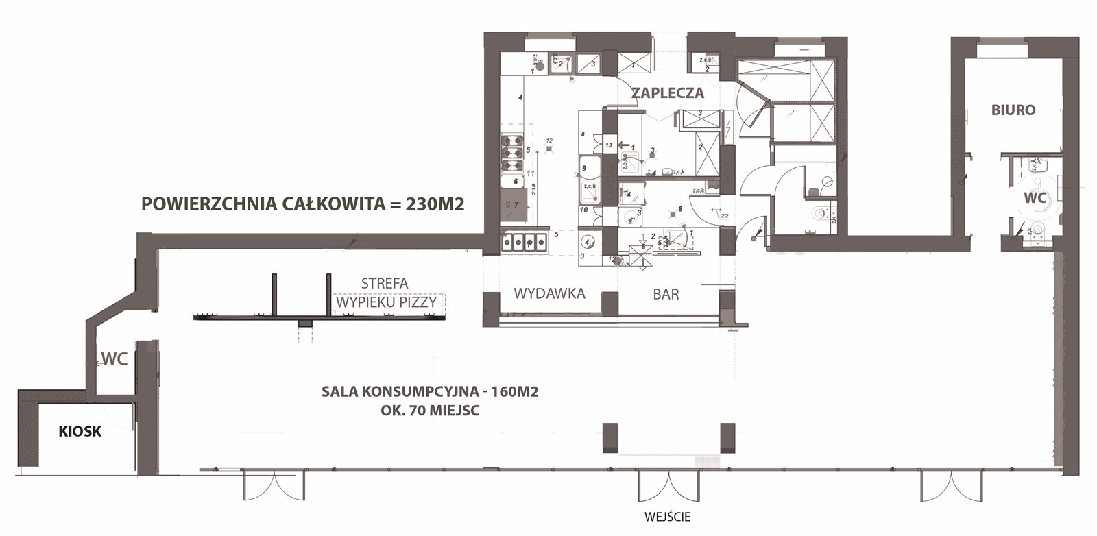- obszerna sala konsumpcyjna na ok. 70 osób / 2 bary / 2 łazienki
