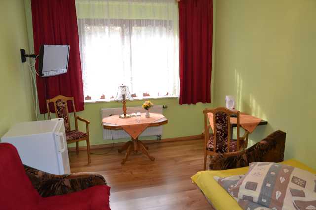 Budynek mieszkalno-hotelowy to: 15 wyposażonych pokoi hotelowych z łazienkami na dwóch pierwszych kondygnacjach; 2 mieszkania, w tym jedno, usytuowane na II p., o pow. 180mkw., z dwoma dużymi tarasami, 4 garaże w bryle budynku oraz poddasze przygotowane do zaadaptowania (podciągnięte media).