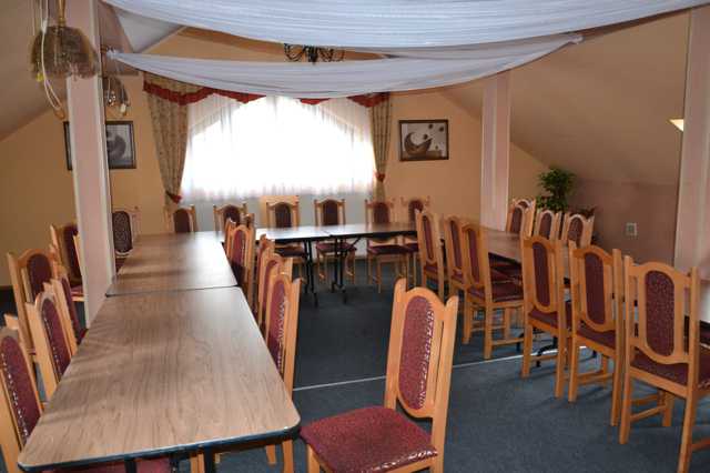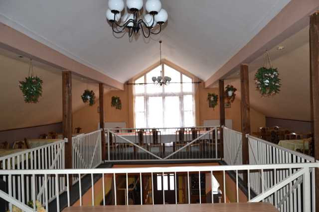 Budynek restauracyjny to: duża dwukondygnacyjna sala na 100os., mniejsze zamykane salki na przyjęcia rodzinne dla ok. 10-20os., klimatyzowane pomieszczenie konferencyjne na ok. 70os., w pełni wyposażona, profesjonalna kuchnia z zapleczem.