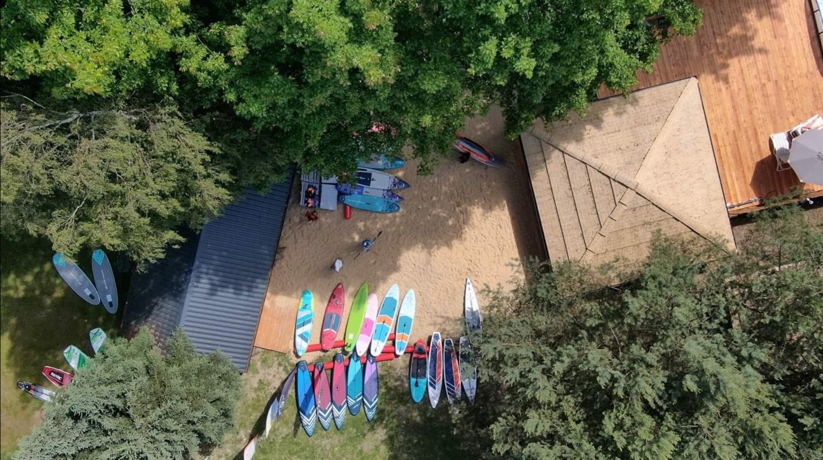 Baza Sportow Wodnych - do ustalenia indywidualnego, nie jest w cenie oferty- szkola windsurfingu, wypozyczalnia sprzetu wolnego, tj. SUP, kajaki, efoil, sprzet windsurfingowy, katamaran solarny, banan, kanapy do ciagania za skuterem, motorowka RIB i wiele innych.
