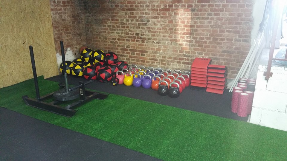 Duża sala fitness jest w pełni wyposażona w podłogę typu puzzle o grubości 20mm oraz sprzęt niezbędny do treningu typu crossfit(sztangi, obciążenie typu bumper, piłki lekarskie, kettlebell, skrzynie, wiosła typu concept2, konstrukcja metalowa na 20 stanowisk). W całym obiekcie funkcjonuje wentylacja. Sala może być bez problemu zaadaptowana pod sprzęt fitness(bieżnie, maszyny wolnostojące, trening z wolnymi ciężarami, itd). Mała sala fitness może być przekształcona na dowolny typ zajęć grupowych. Łazienki oraz szatnie są w pełni wyposażone w sprzęt sanitarny, szatnia posiada ławki oraz wieszaki.