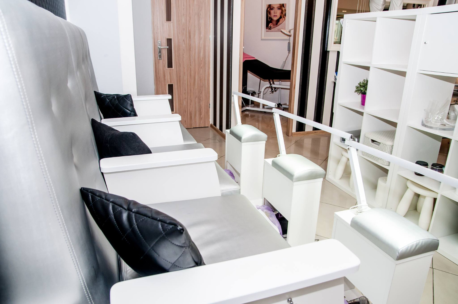 - sali głównej z 4 miejscami do manicure oraz 3 miejscami do pedicure,