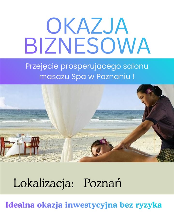 Odstąpię dochodowy salon masażu Spa & Wellness w Poznaniu z dużą bazą klientów