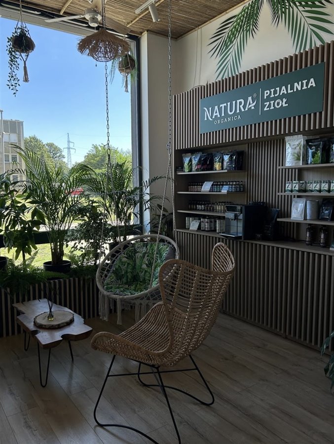 Bardzo duża recepcja z poczekalnią i pijalnią zdrowych herbat