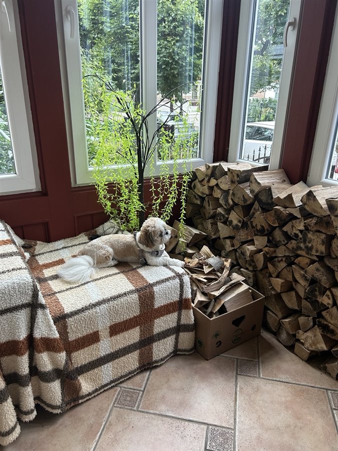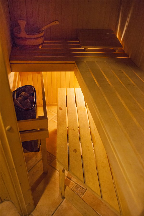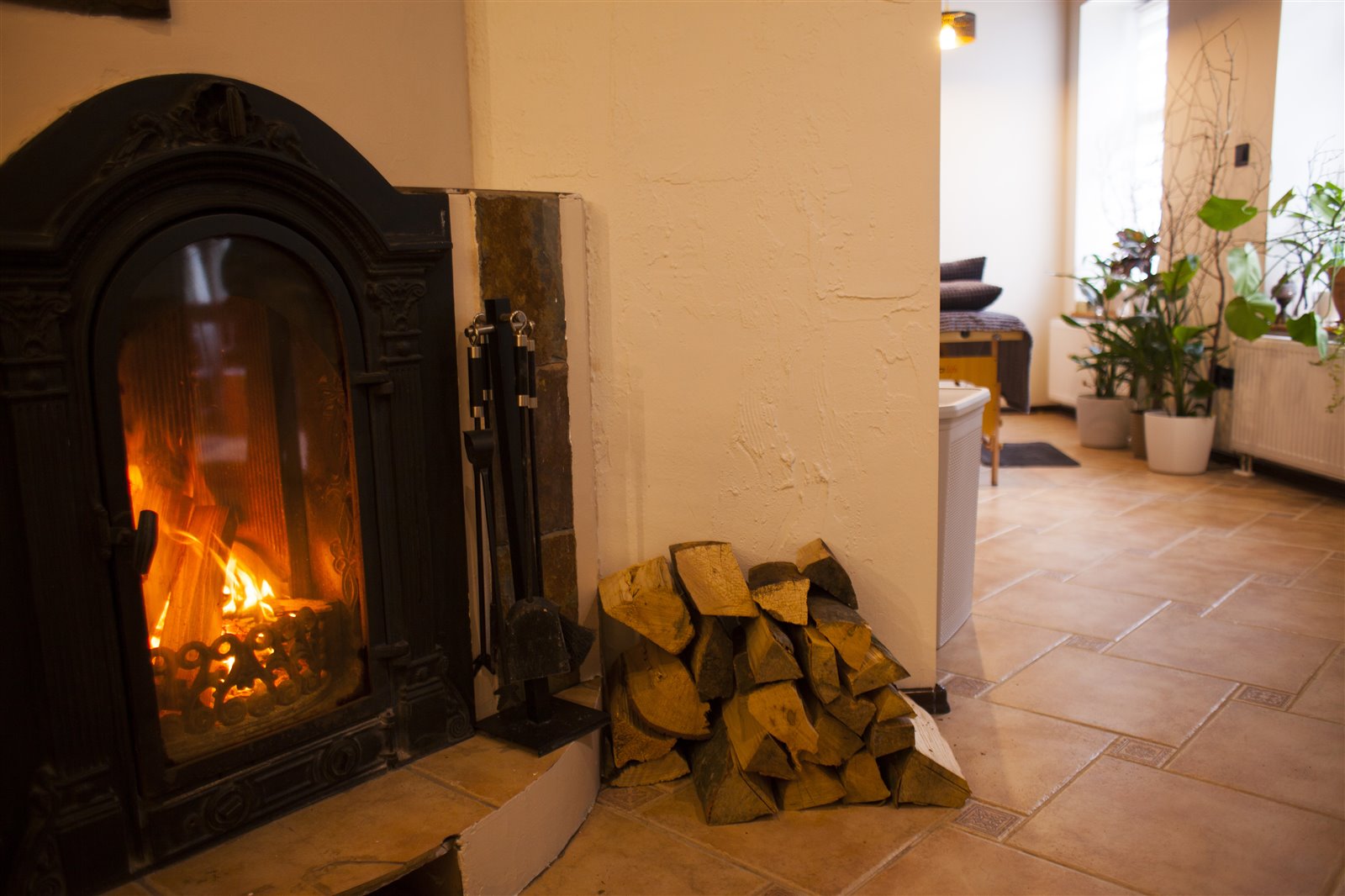Stylowe wnętrze w klimacie eco/boho: fitobeczka (sauna ziołowa), sauna finska, kominek, naturalne drewno, ciepłe oświetlenie
