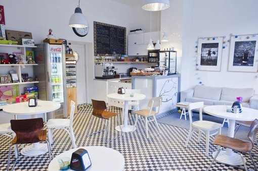 Lokal jest połączeniem kawiarni, sali zabaw dla dzieci i sklepiku.